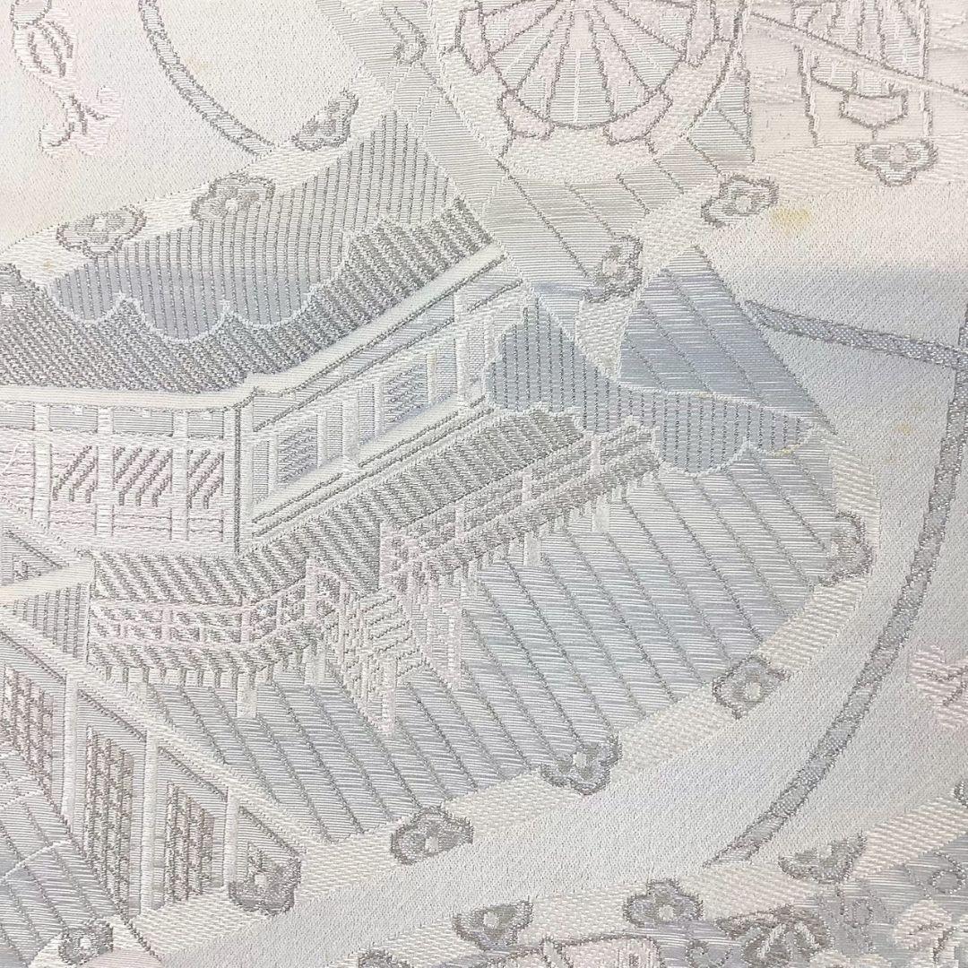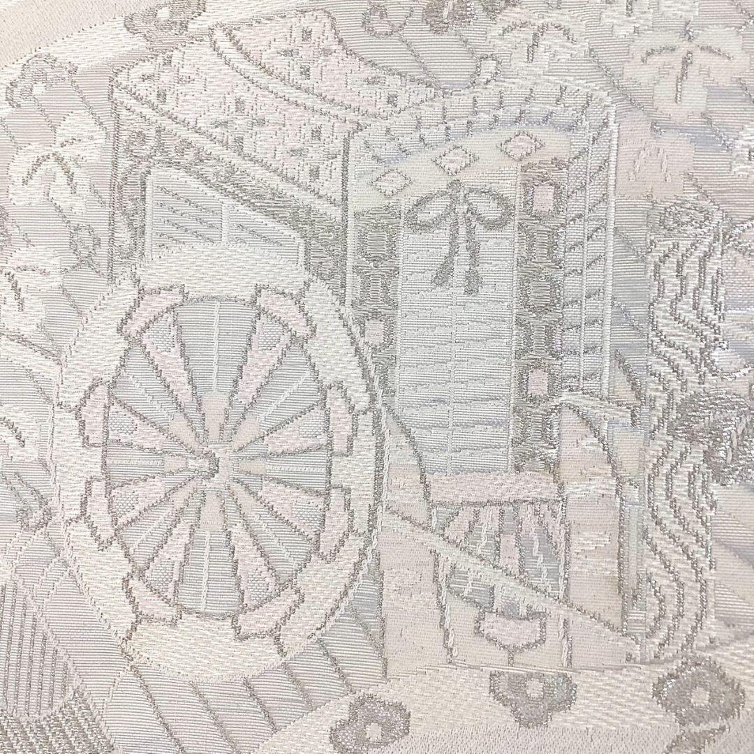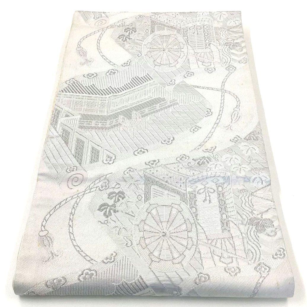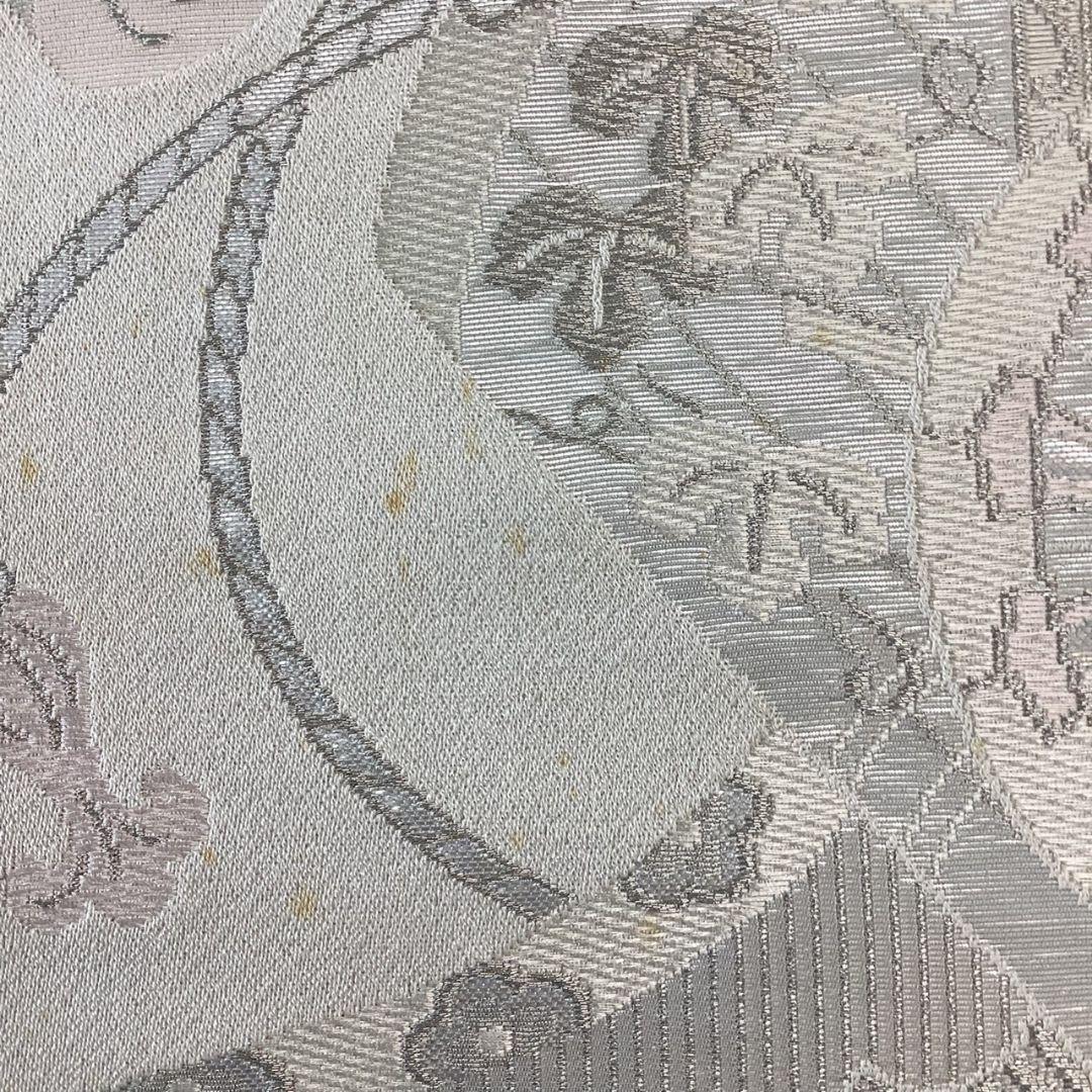 4921# Japanese Vintage Fukuro Obi Belt Kimono Fabric Silk Traditional Silver