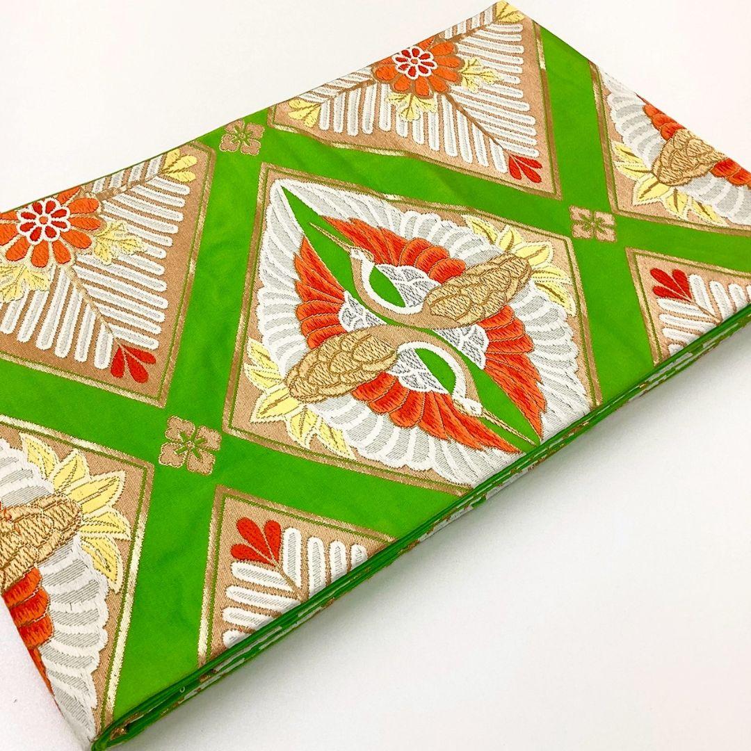 4985# Japanese Vintage Fukuro Obi Belt Kimono Fabric Silk Traditional Green