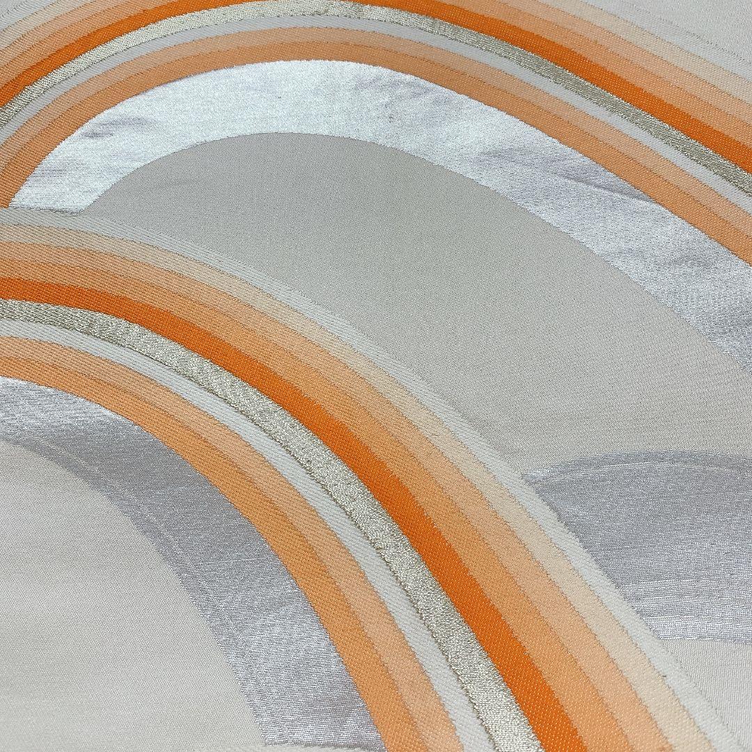 5132# Japanese Vintage Fukuro Obi Belt Kimono Fabric Silk Traditional Silver