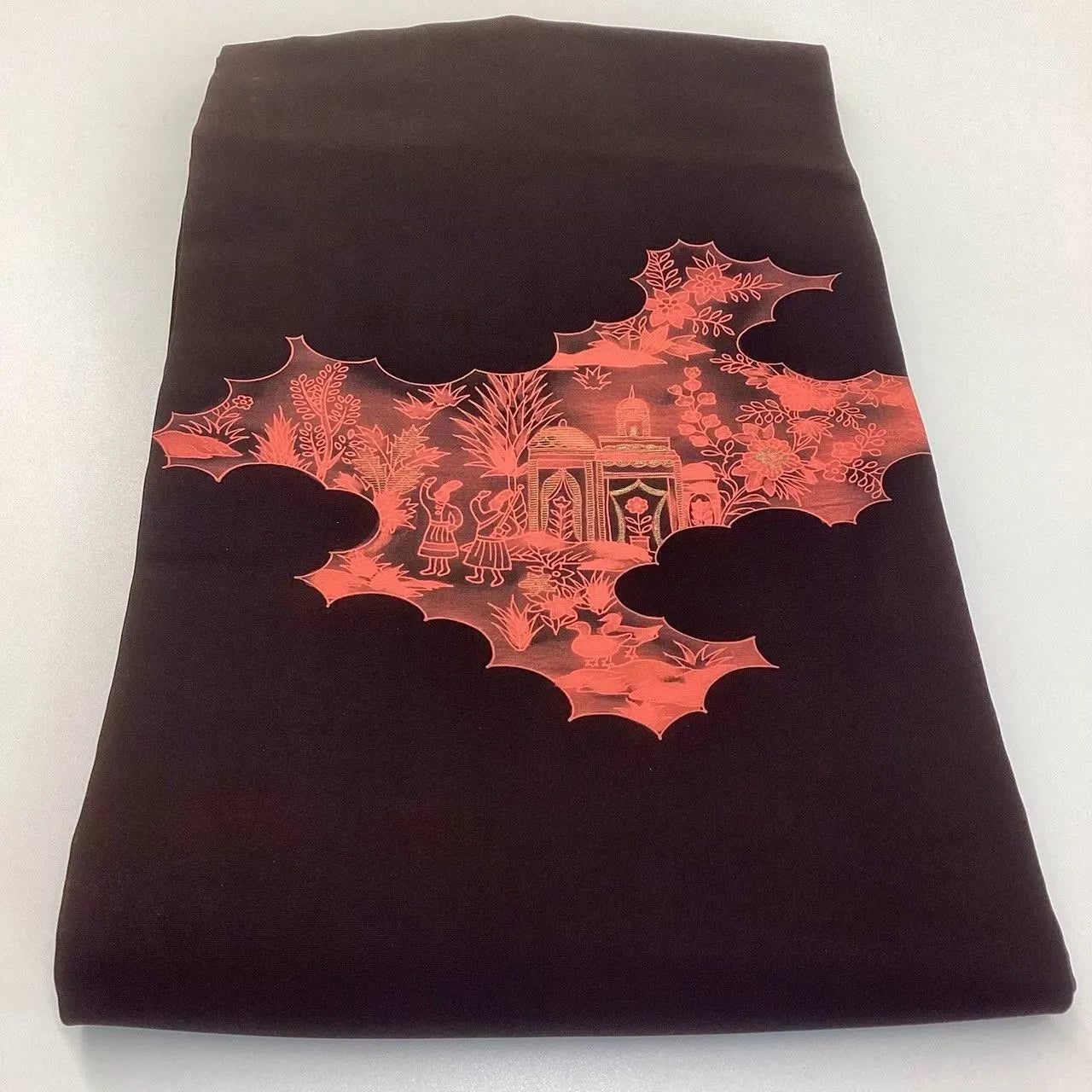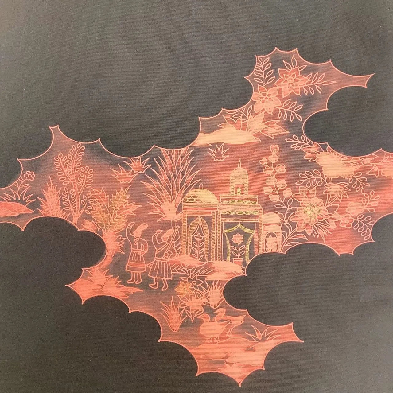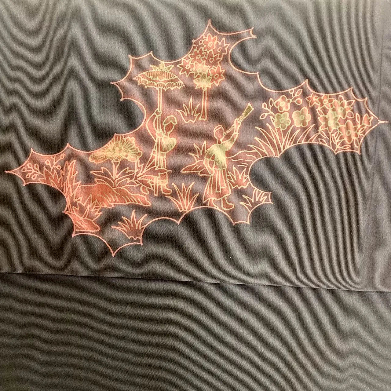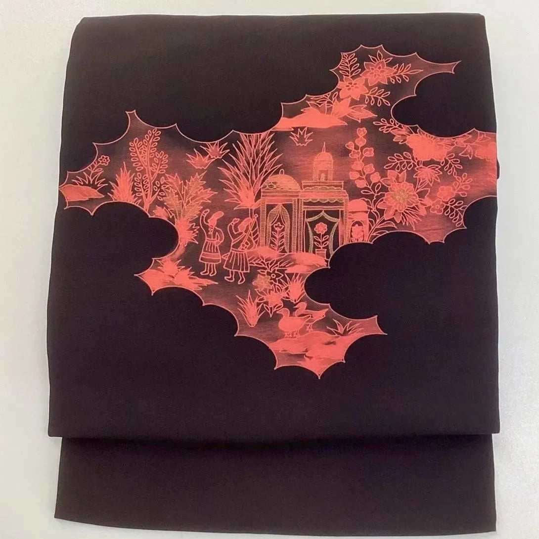 This is a Nagoya obi with a human figure and landscape design.