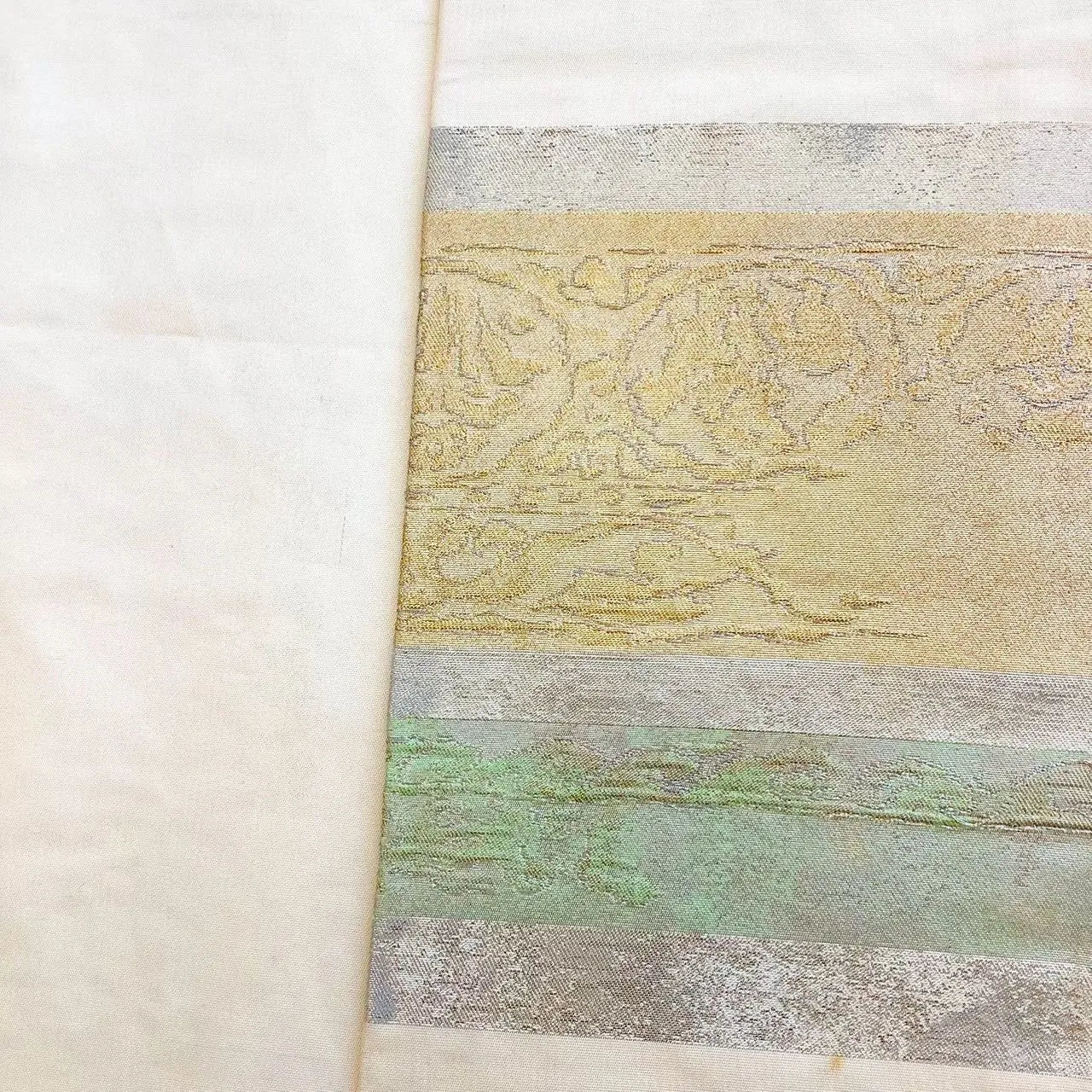 5687# Japanese Vintage Nagoya Obi Belt Kimono Fabric Silk Traditional Silver