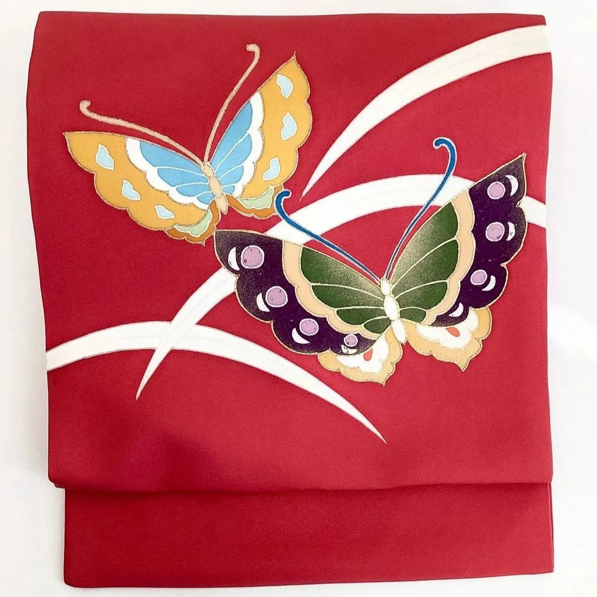 This is an embroidered Nagoya obi with a butterfly design.