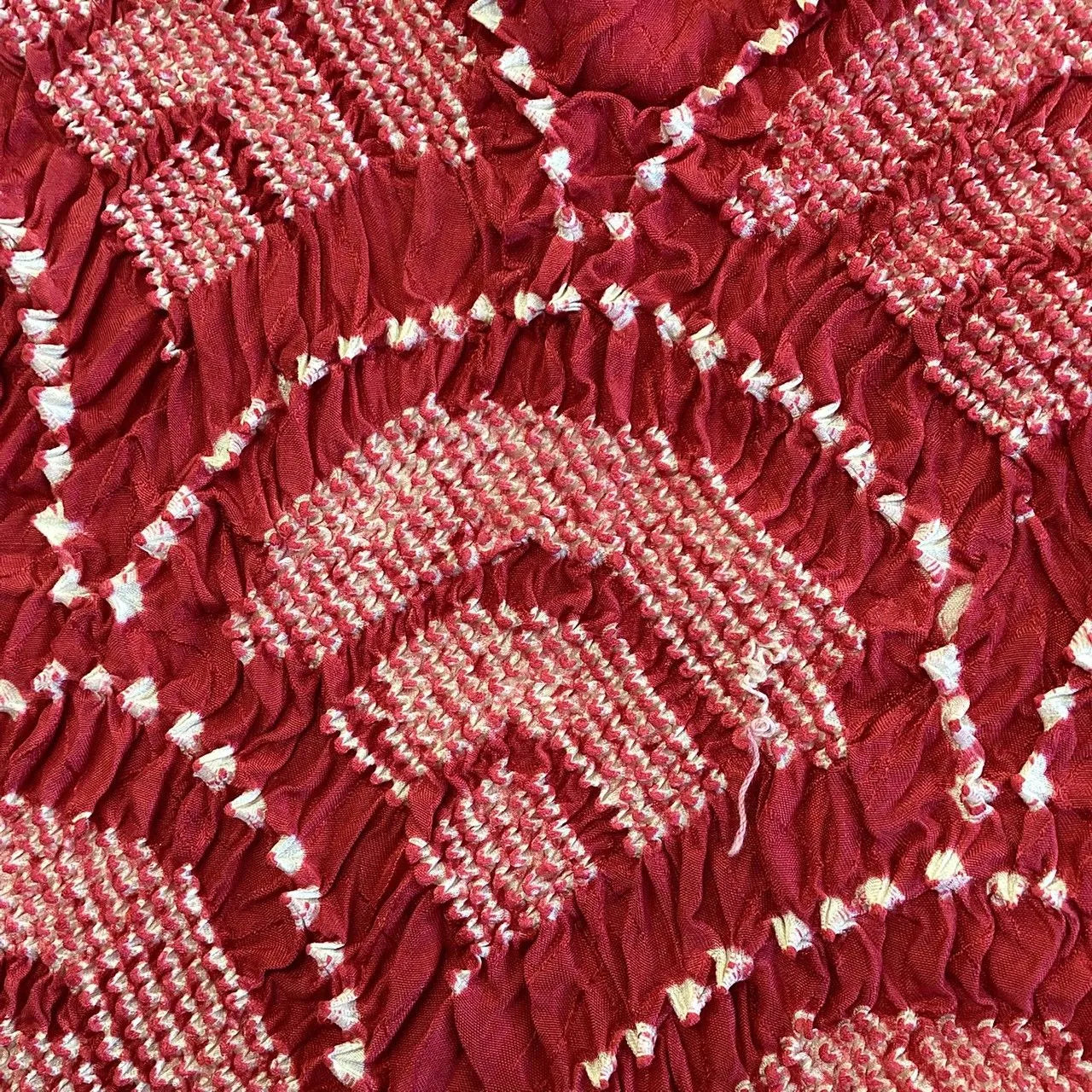 This is a set of two pieces of obijime and obiage with a wave pattern and shibori.