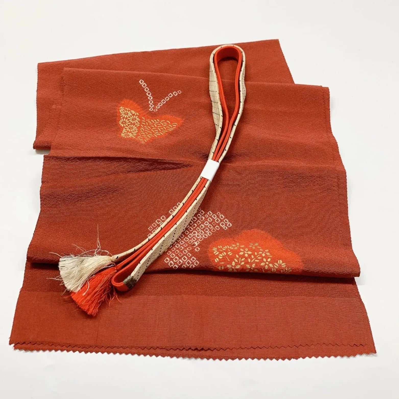 5956# Japanese Kimono Accessory Vintage Obiage and Obijime 2-piece Set Silk