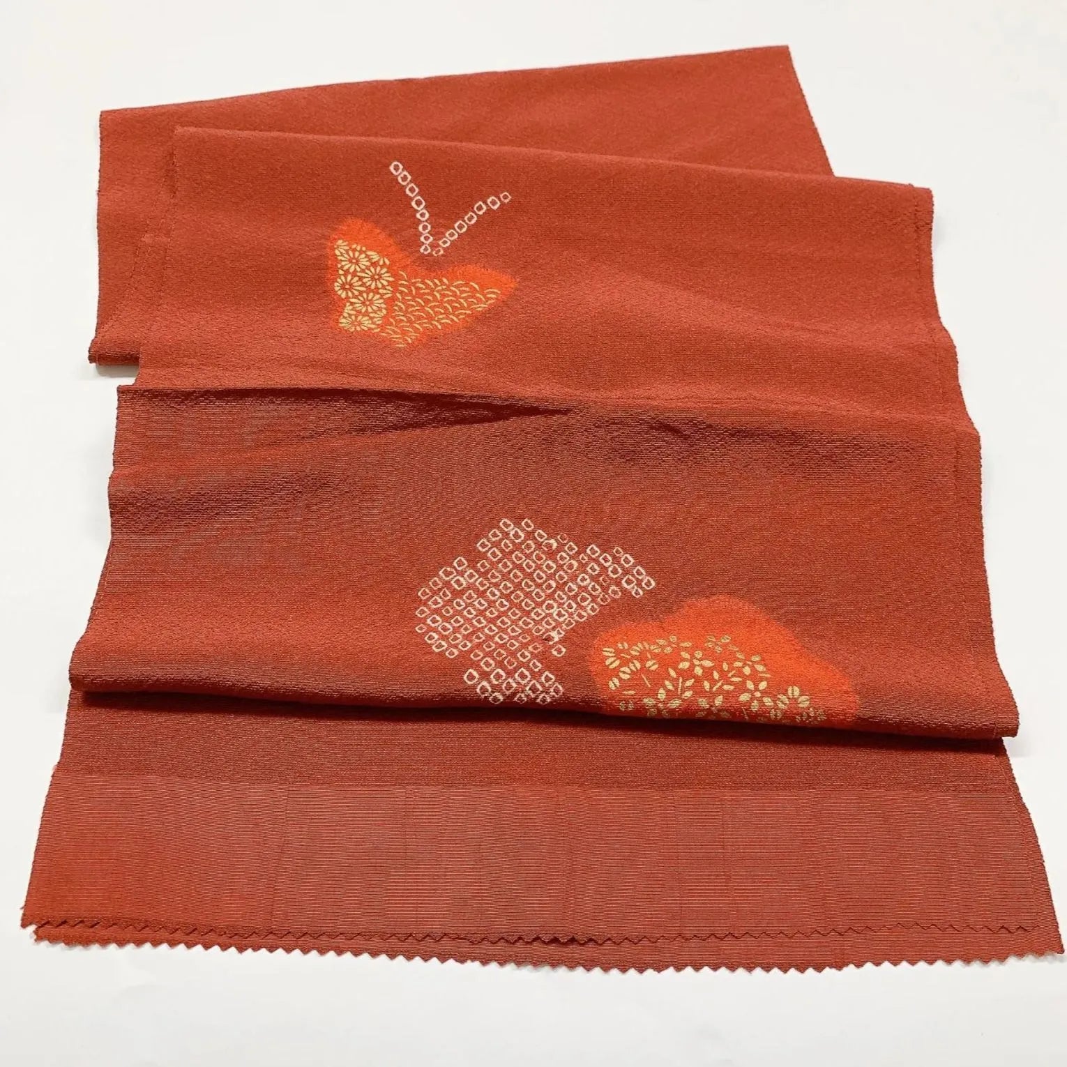This is a set of two obijime and obiage with butterfly and flower design and shibori.