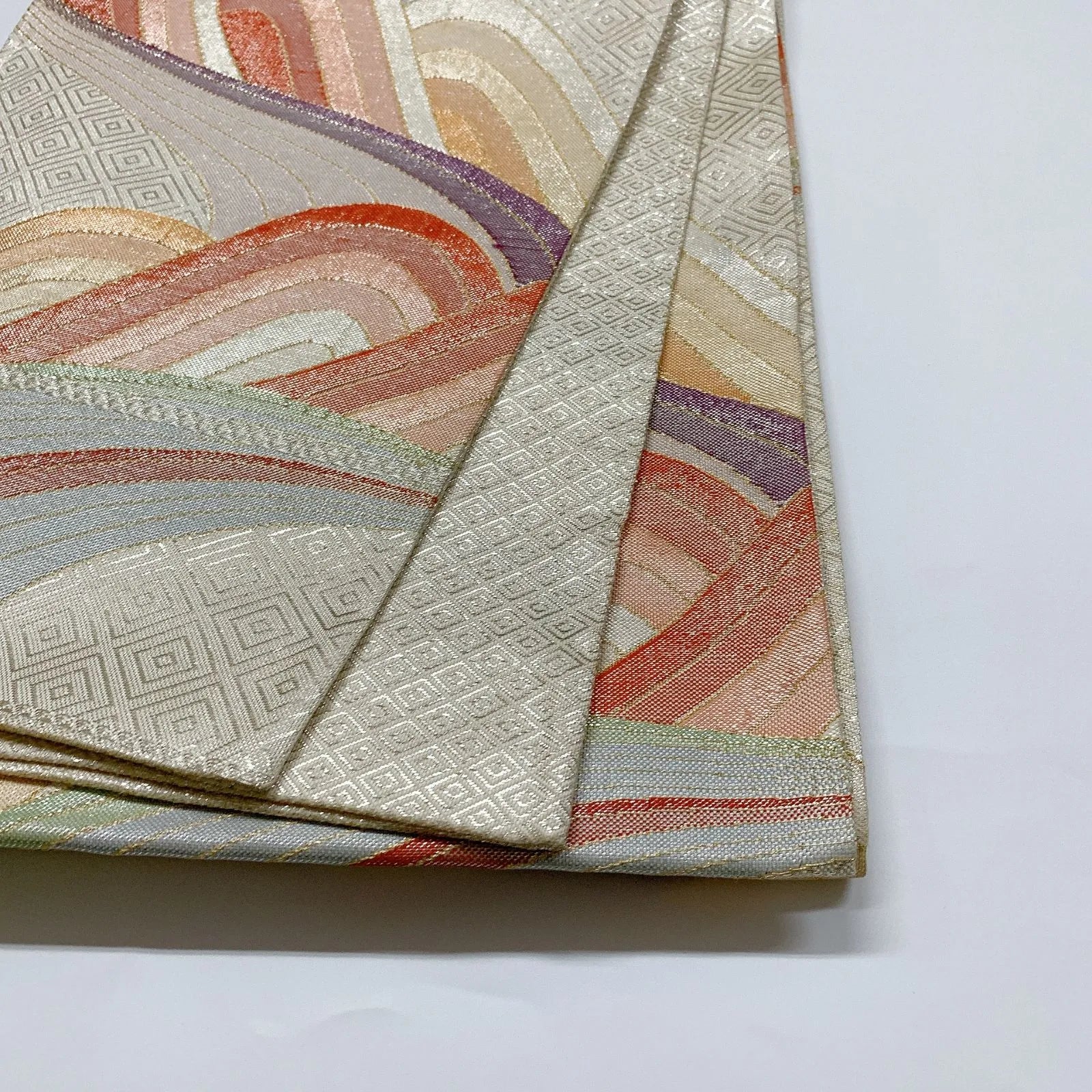 6006# Japanese Vintage Fukuro Obi Belt Kimono Fabric Silk Traditional Silver