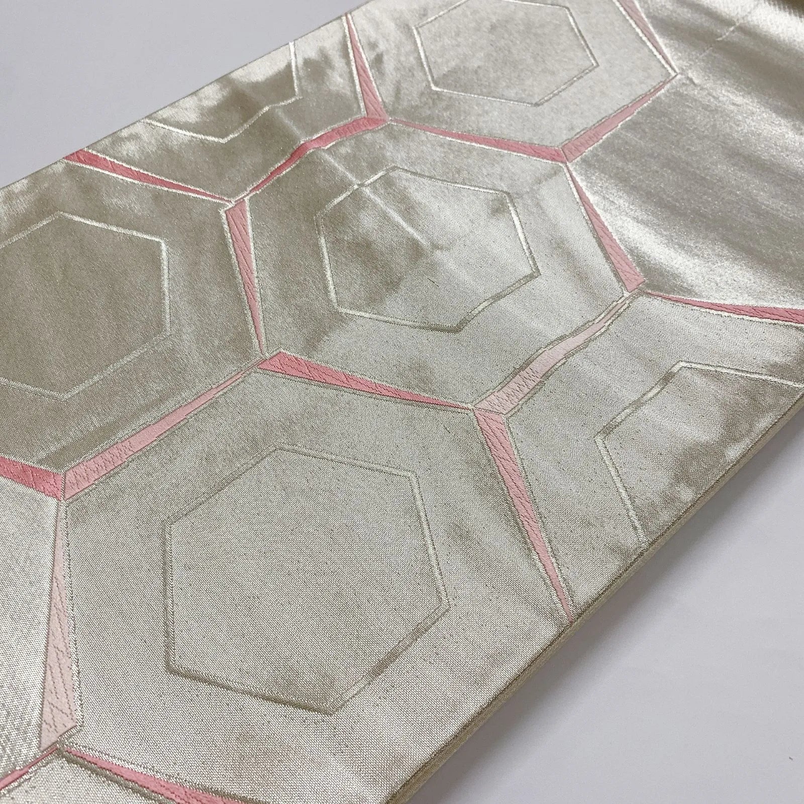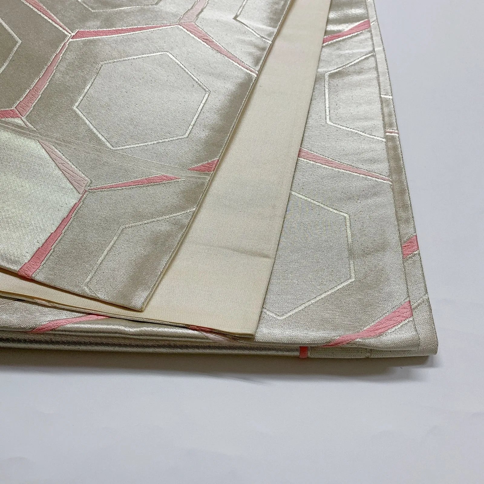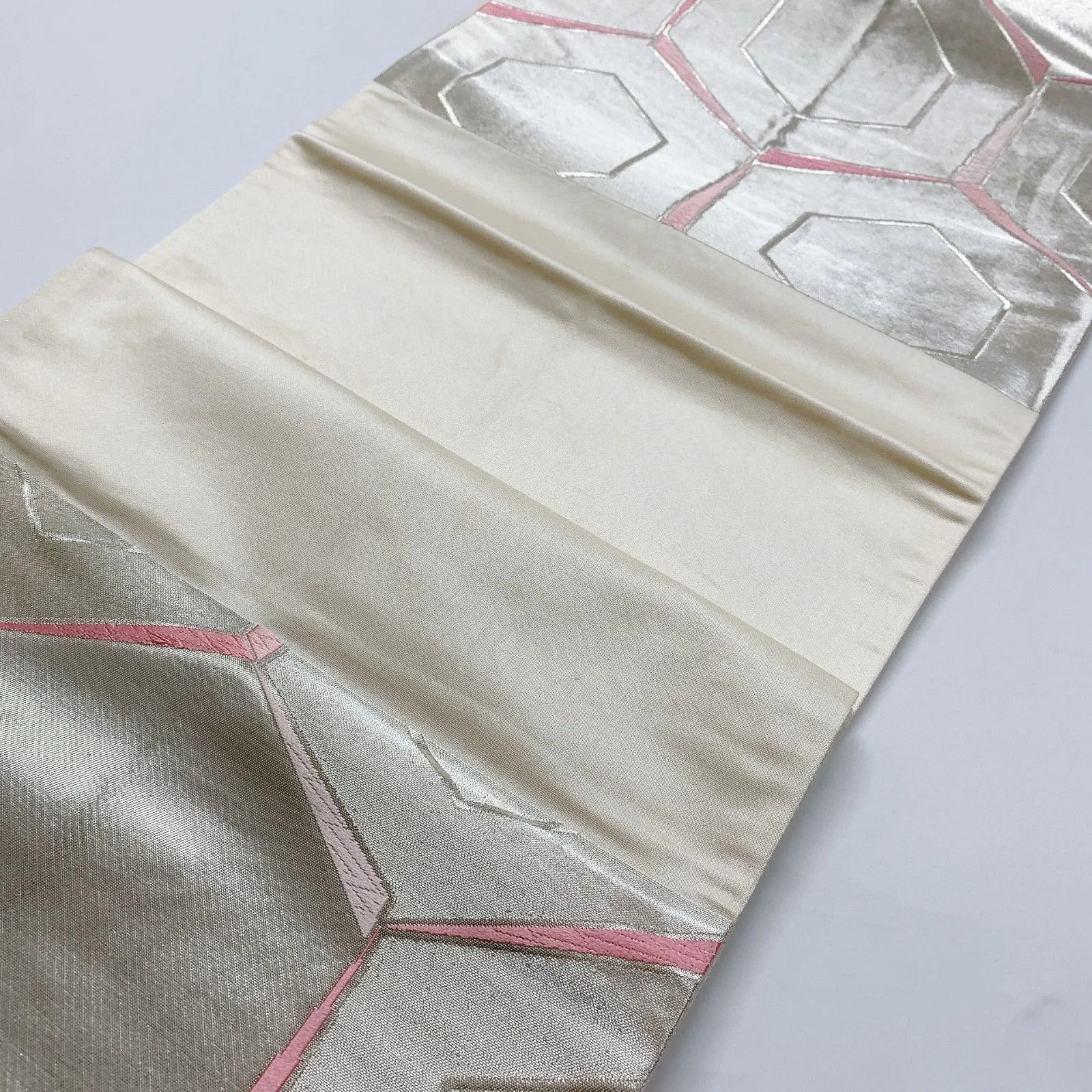 6027# Japanese Vintage Fukuro Obi Belt Kimono Fabric Silk Traditional Silver