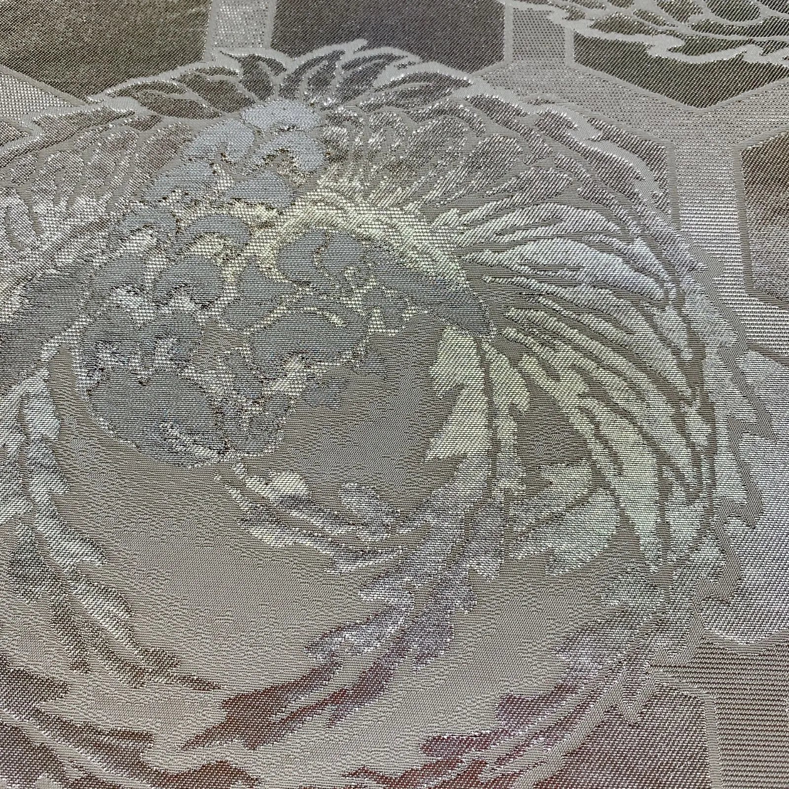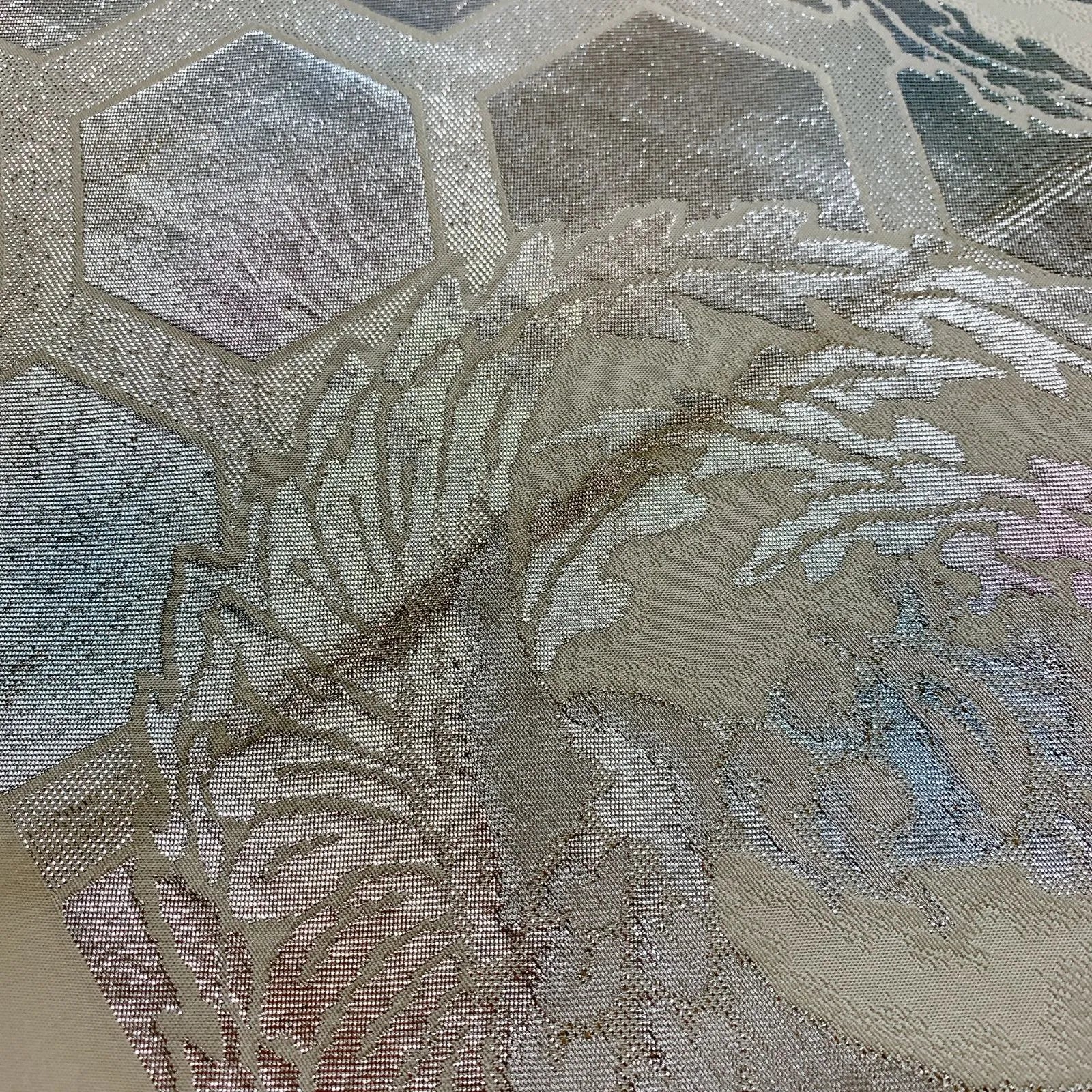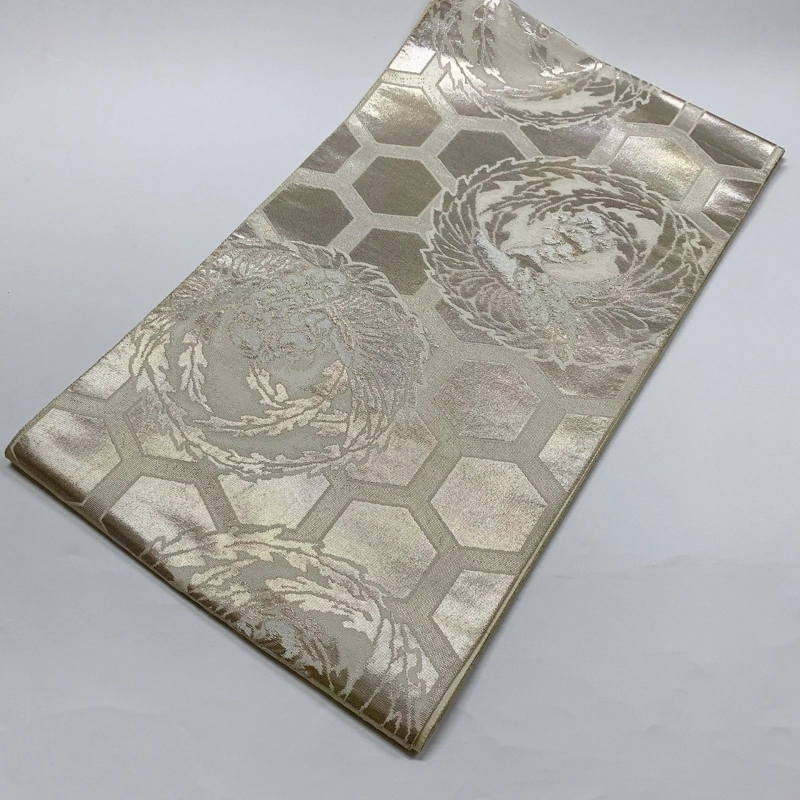 6036# Japanese Vintage Fukuro Obi Belt Kimono Fabric Silk Traditional Silver