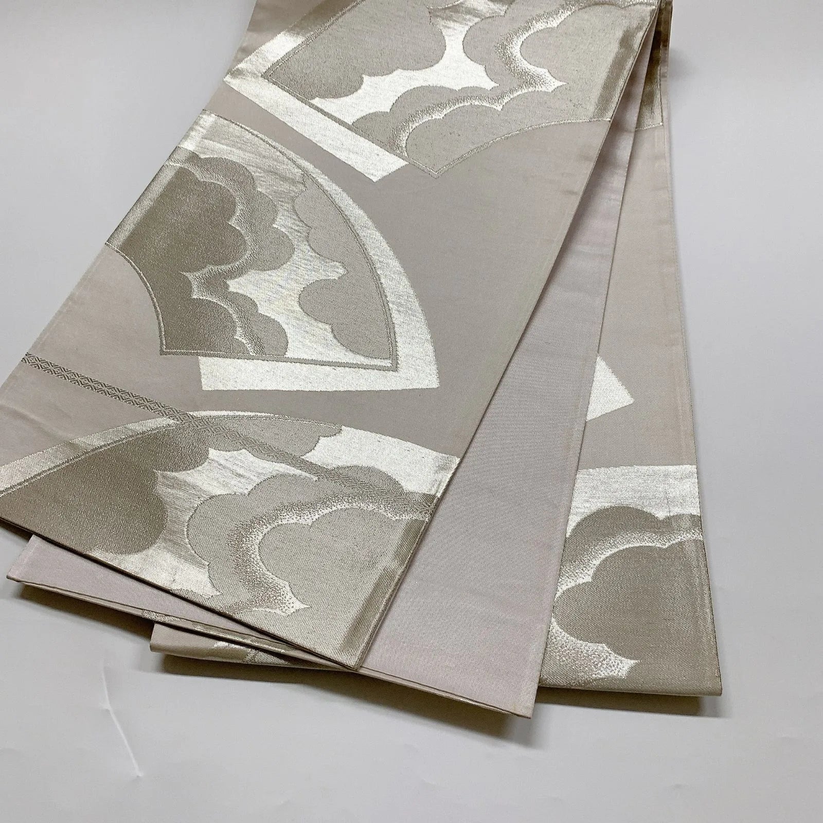 6040# Japanese Vintage Fukuro Obi Belt Kimono Fabric Silk Traditional Silver