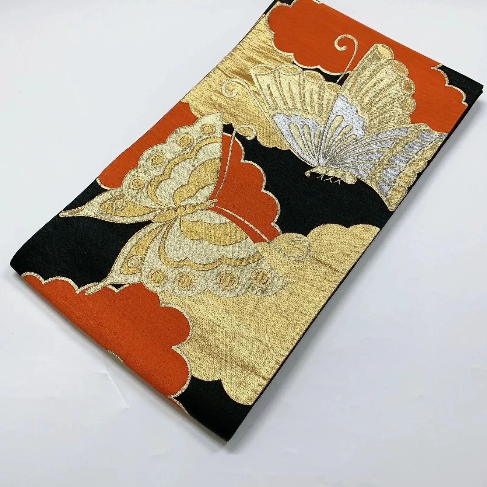 This is a pouch obi with butterfly and cloud patterns in gold and silver.