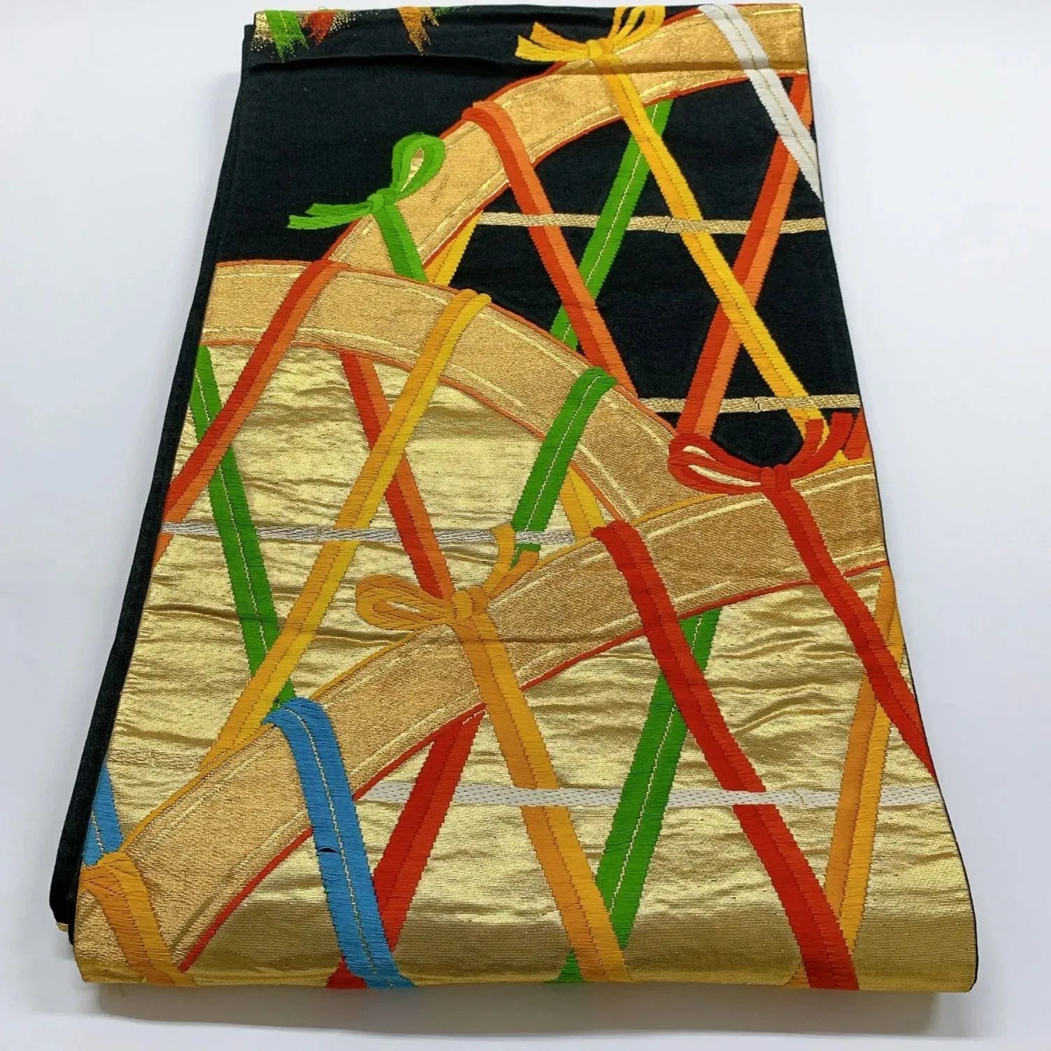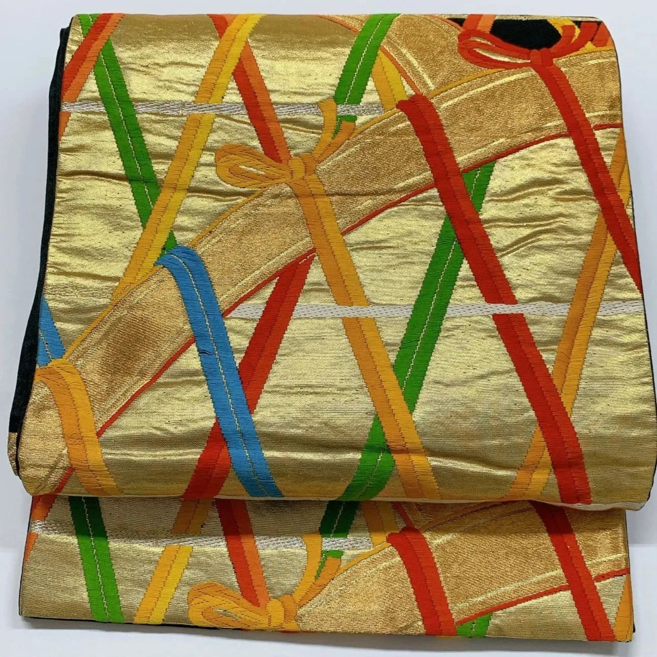 6044# Japanese Vintage Fukuro Obi Belt Kimono Fabric Silk Traditional Embroidery