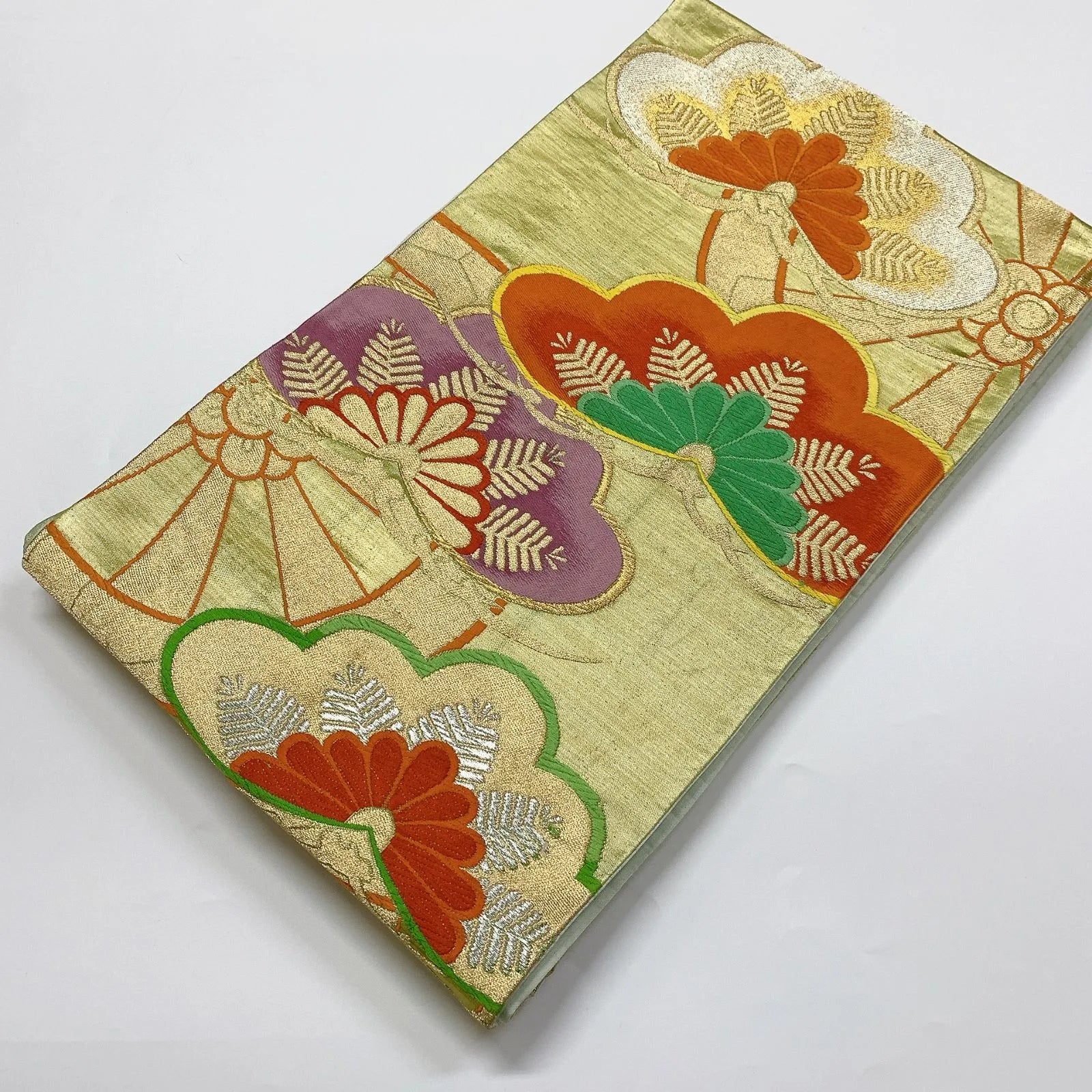 6045# Japanese Vintage Fukuro Obi Belt Kimono Fabric Silk Traditional Gold