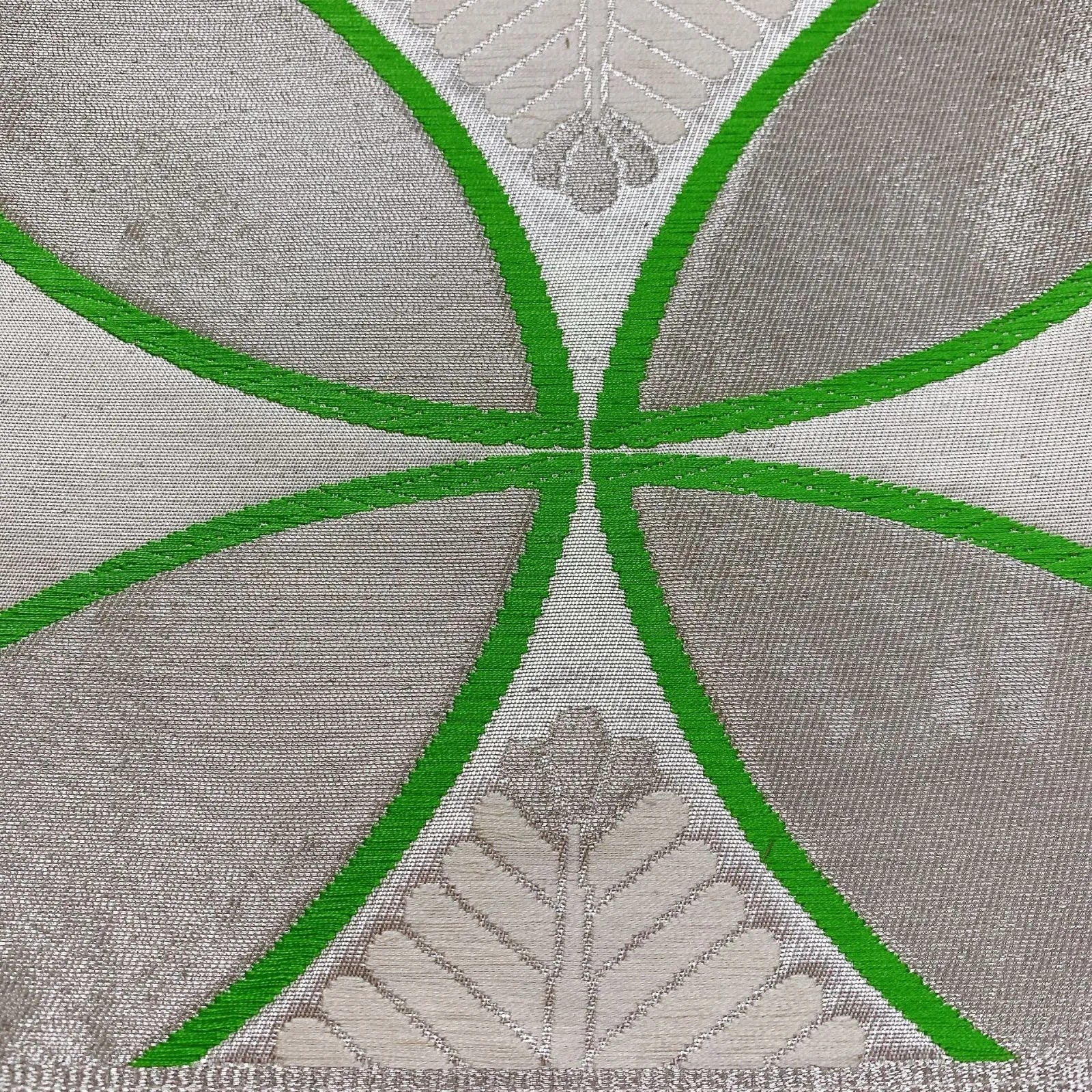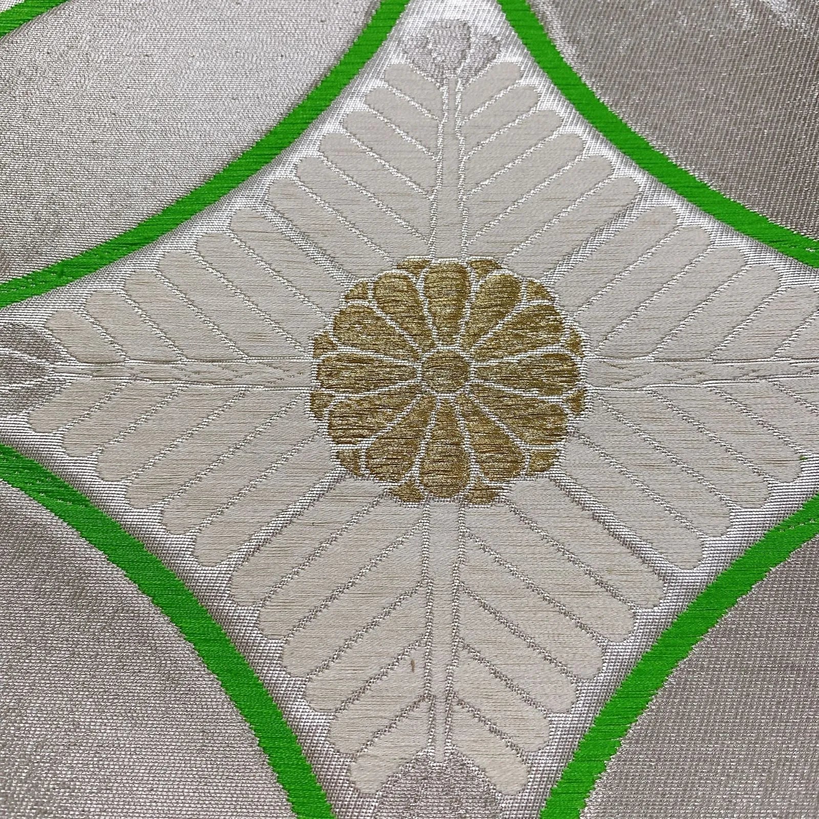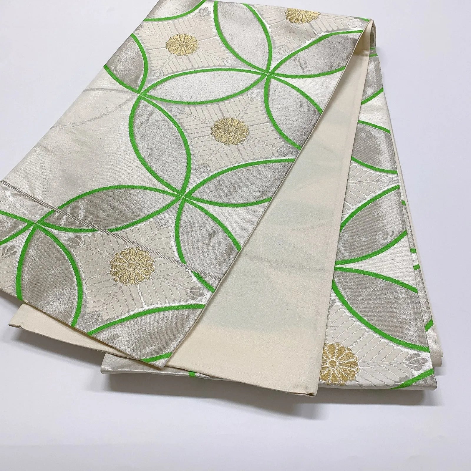 6047# Japanese Vintage Fukuro Obi Belt Kimono Fabric Silk Traditional Silver