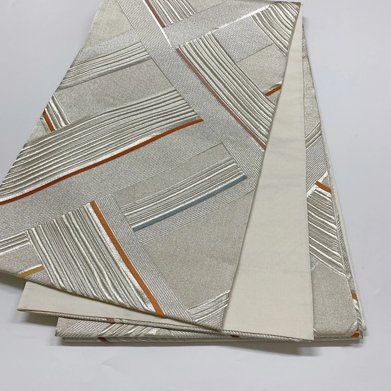 6053# Japanese Vintage Fukuro Obi Belt Kimono Fabric Silk Traditional Silver