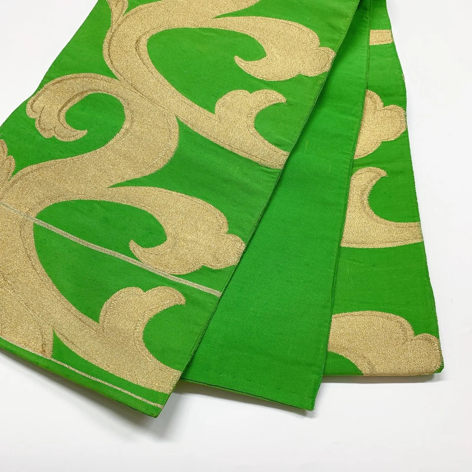 6054# Japanese Vintage Fukuro Obi Belt Kimono Fabric Silk Traditional Green