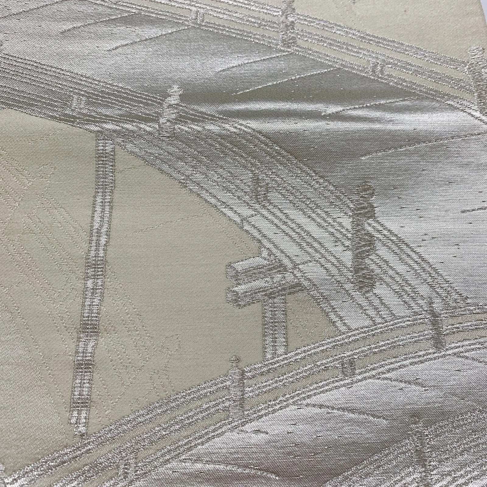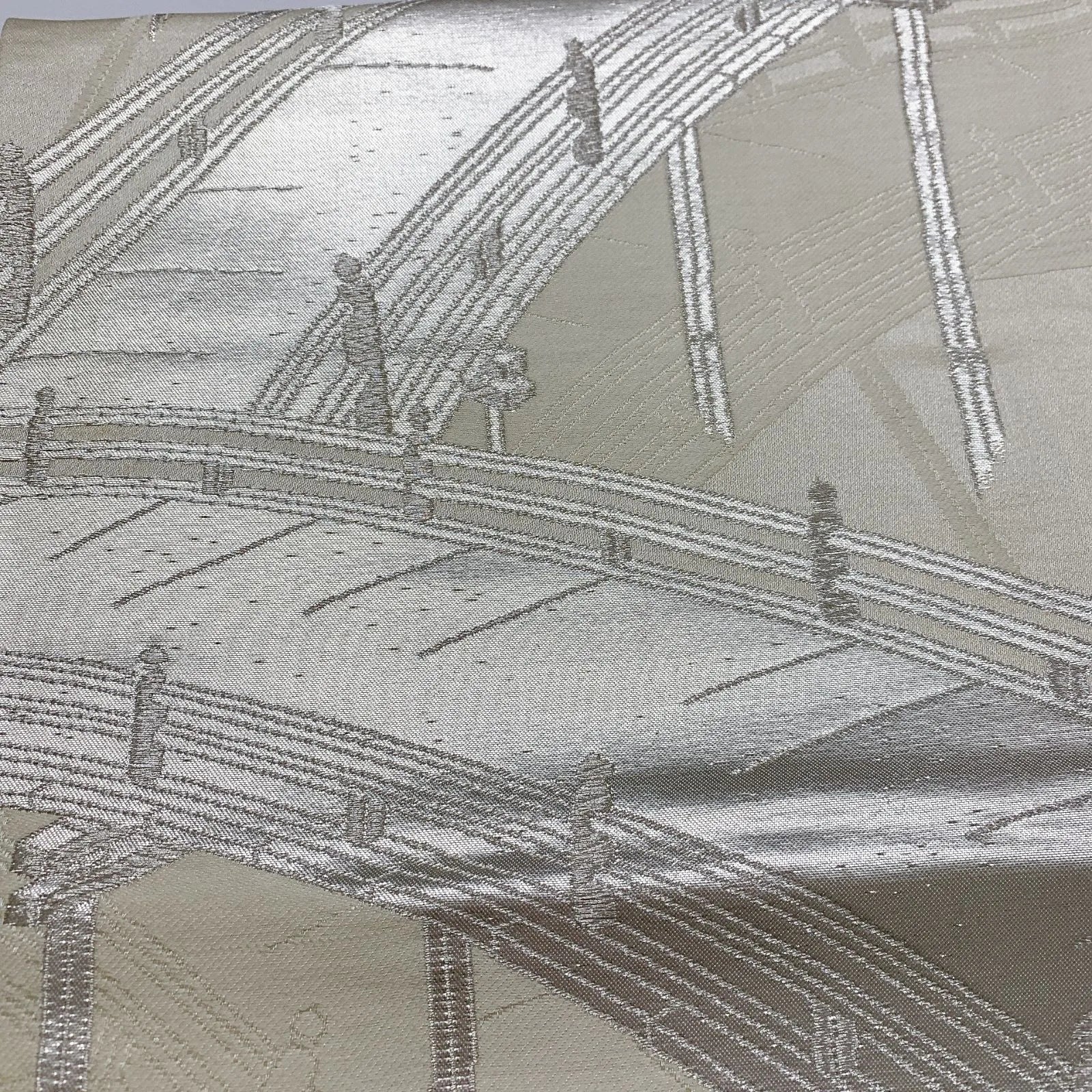6072# Japanese Vintage Fukuro Obi Belt Kimono Fabric Silk Traditional Silver