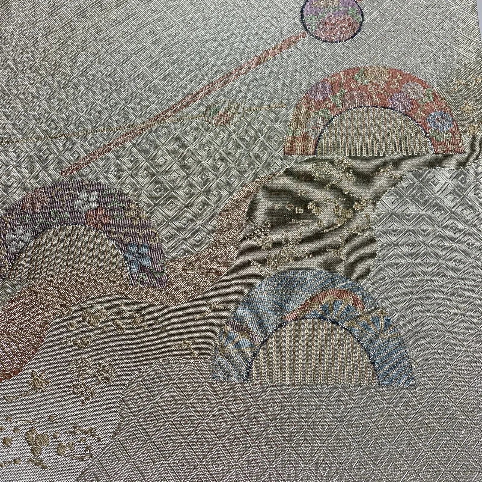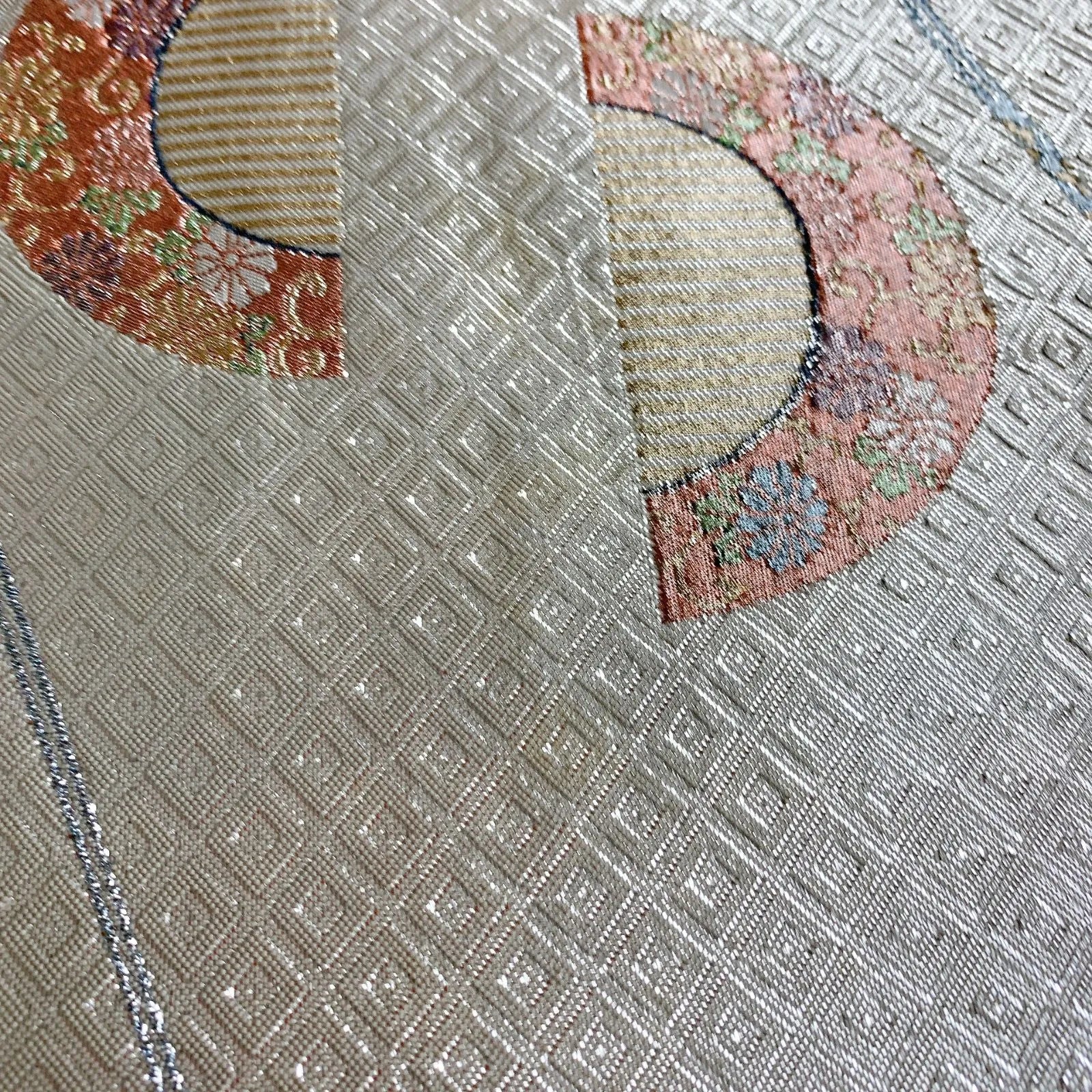6080# Japanese Vintage Fukuro Obi Belt Kimono Fabric Silk Traditional Silver