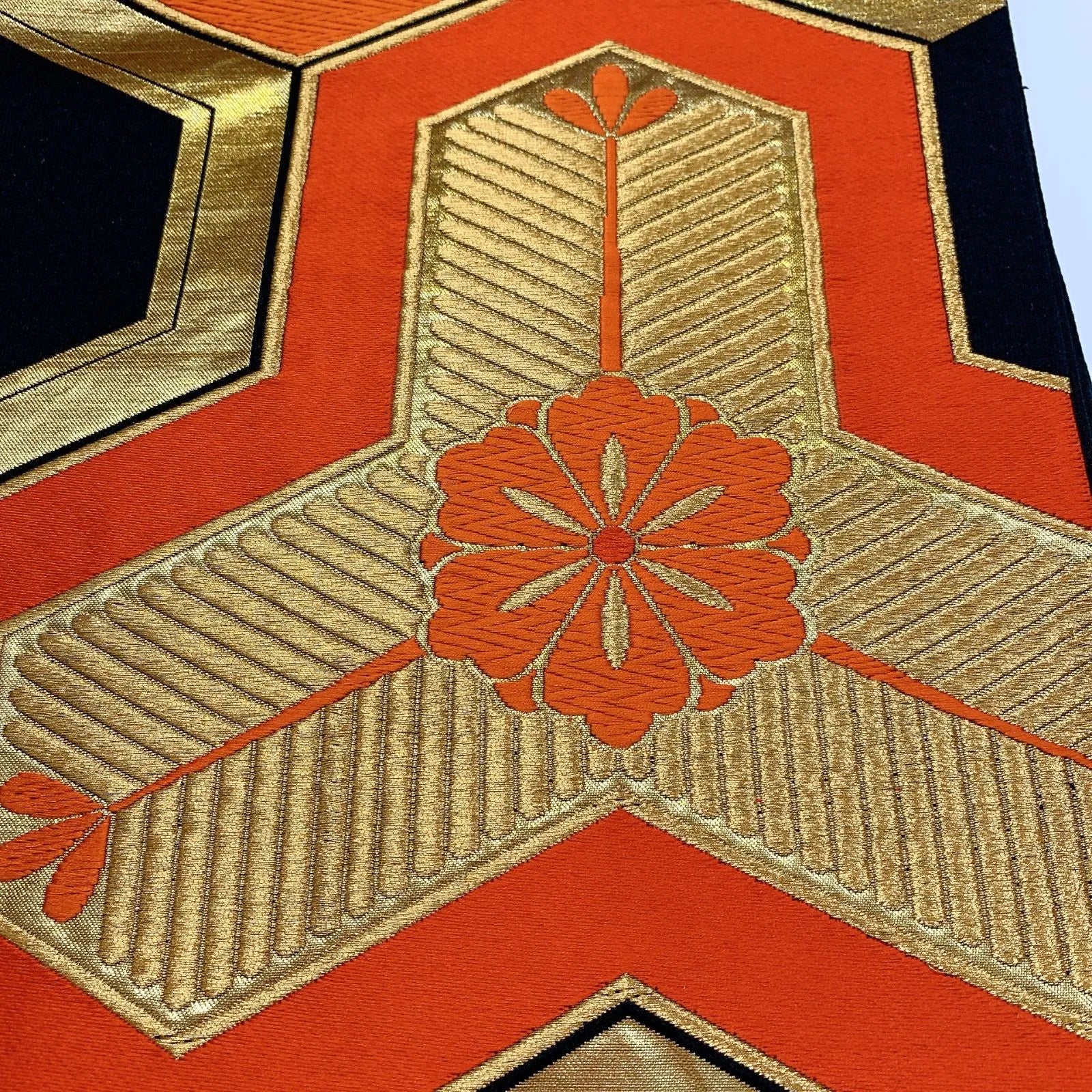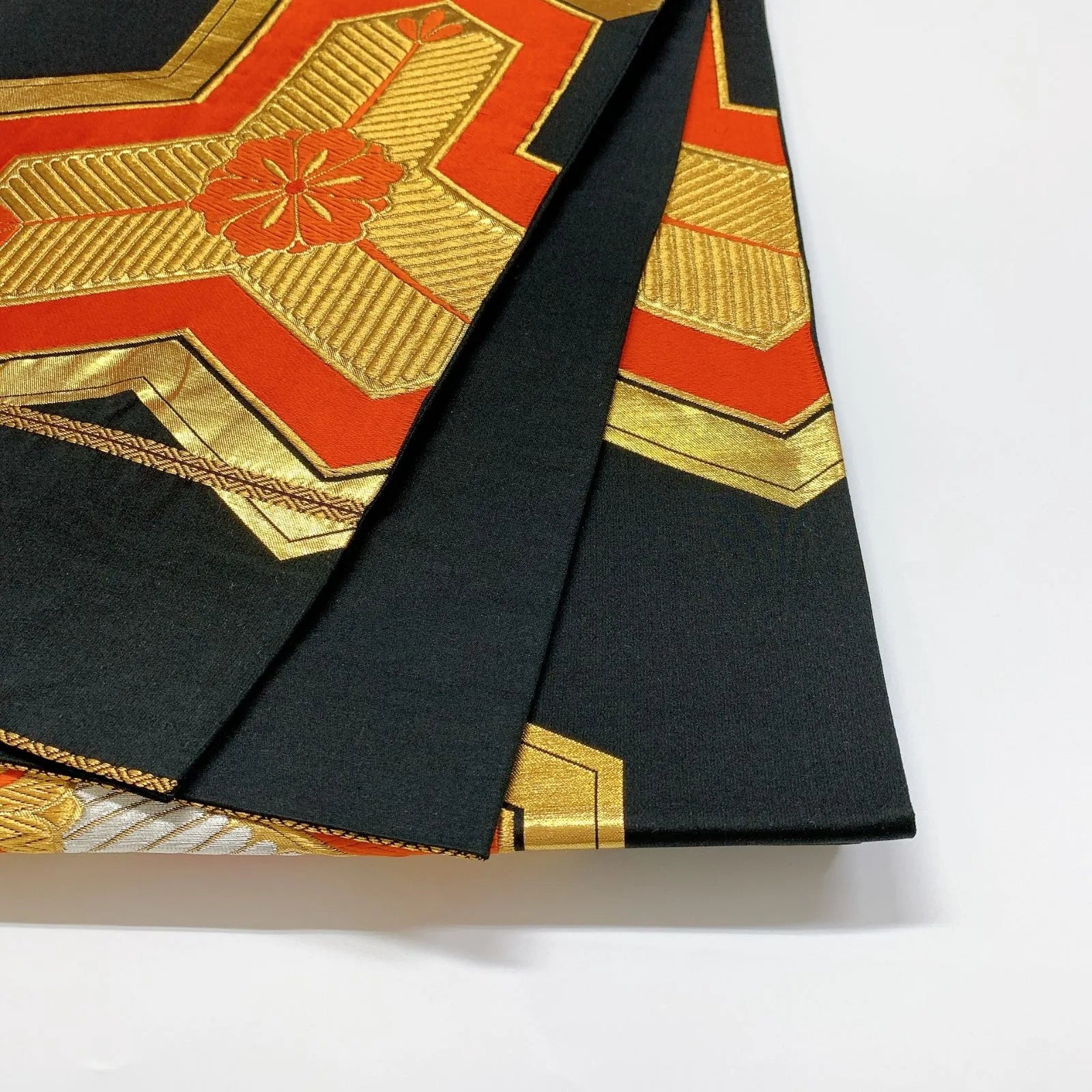 6081# Japanese Vintage Fukuro Obi Belt Kimono Fabric Silk Traditional Black
