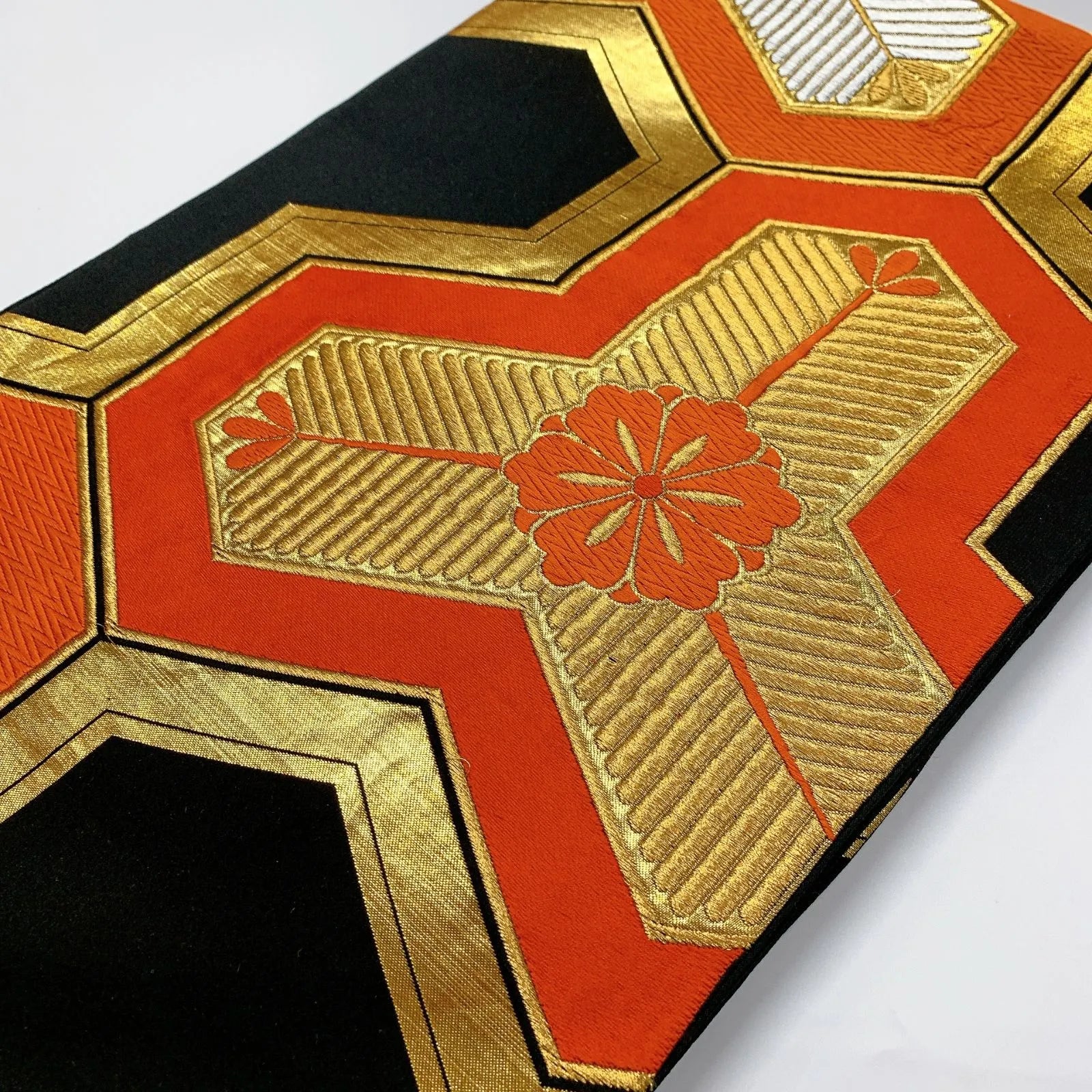 This is a pouch obi with gold and silver threads.
