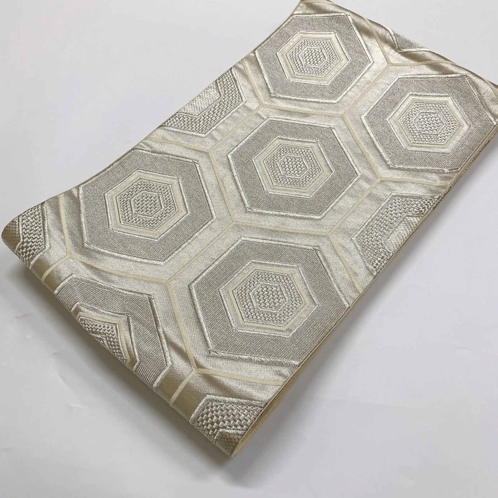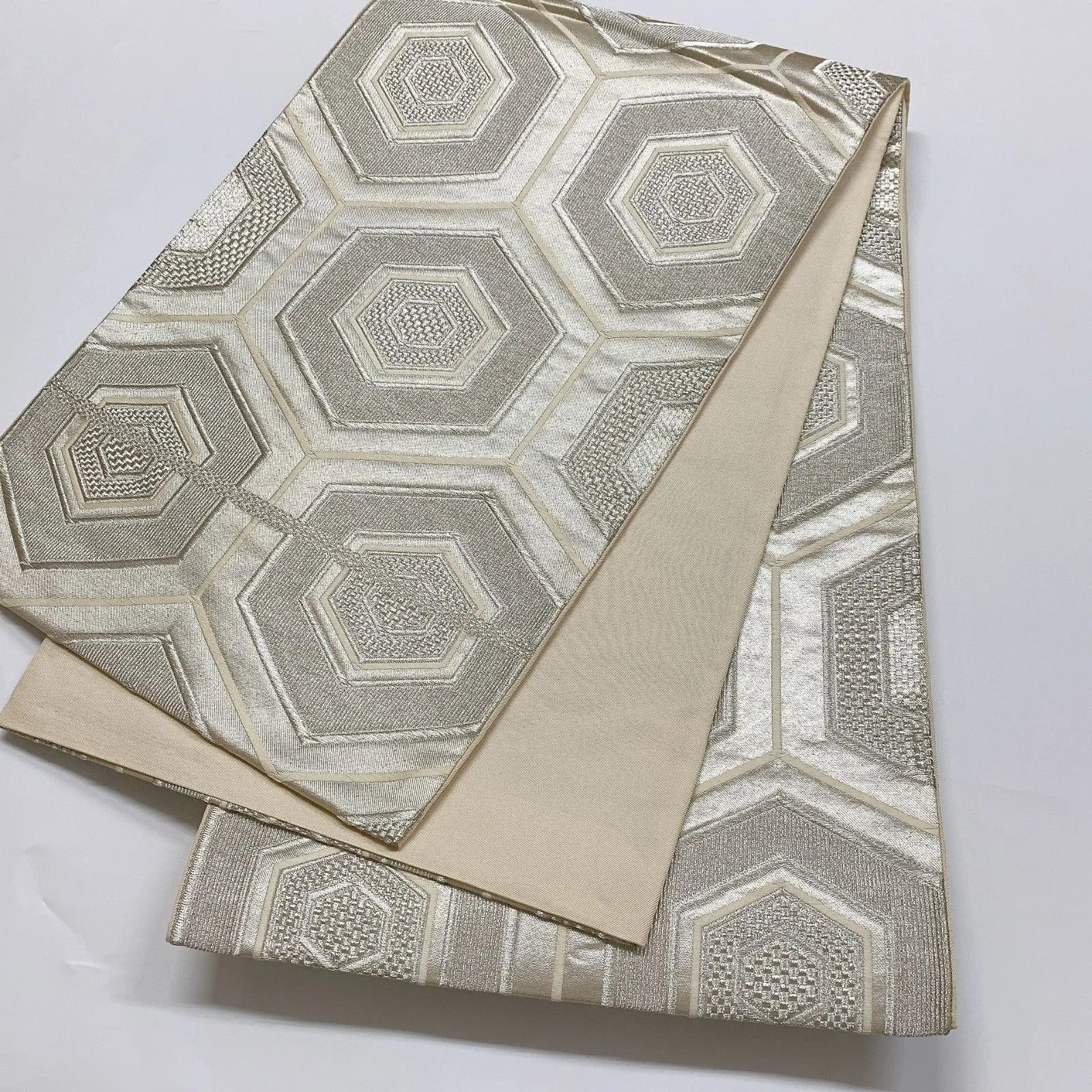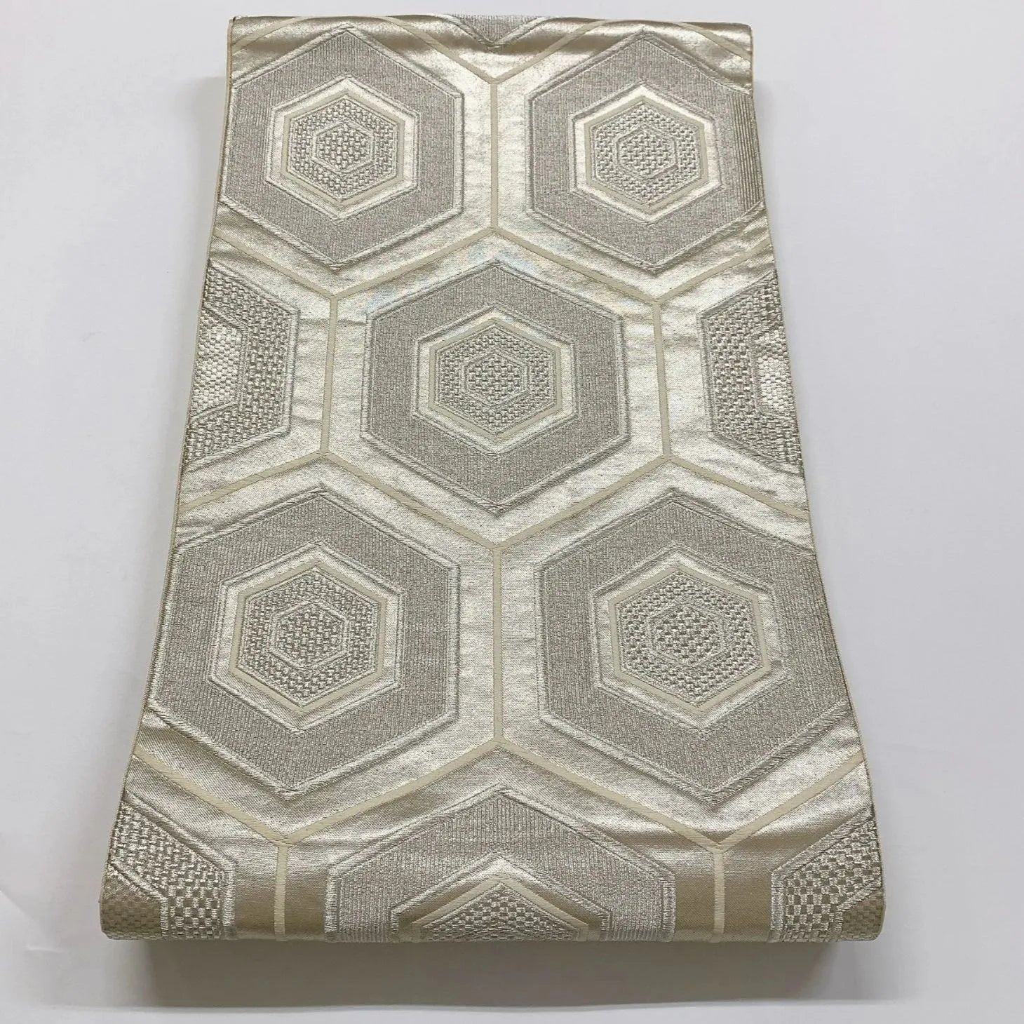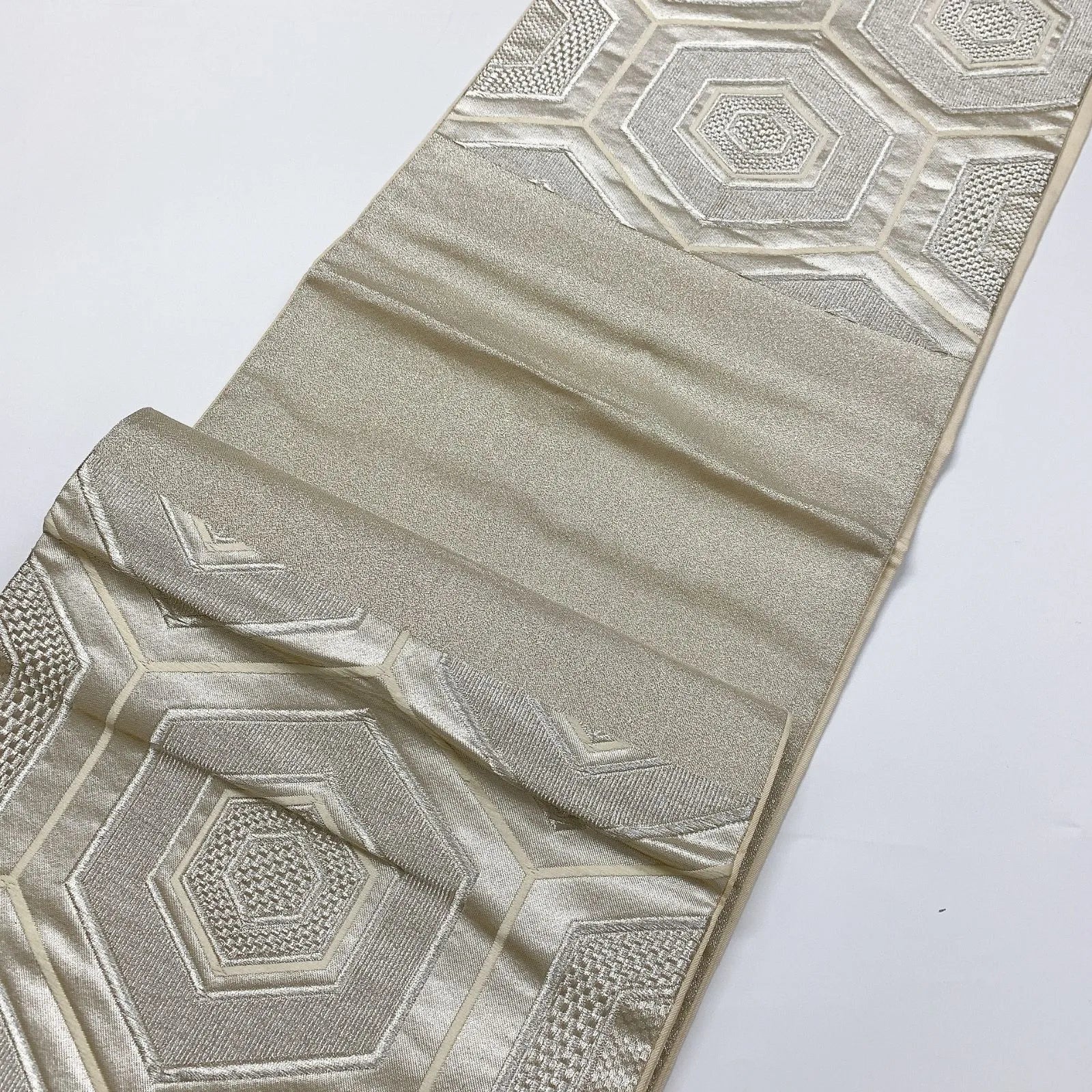 6087# Japanese Vintage Fukuro Obi Belt Kimono Fabric Silk Traditional Silver