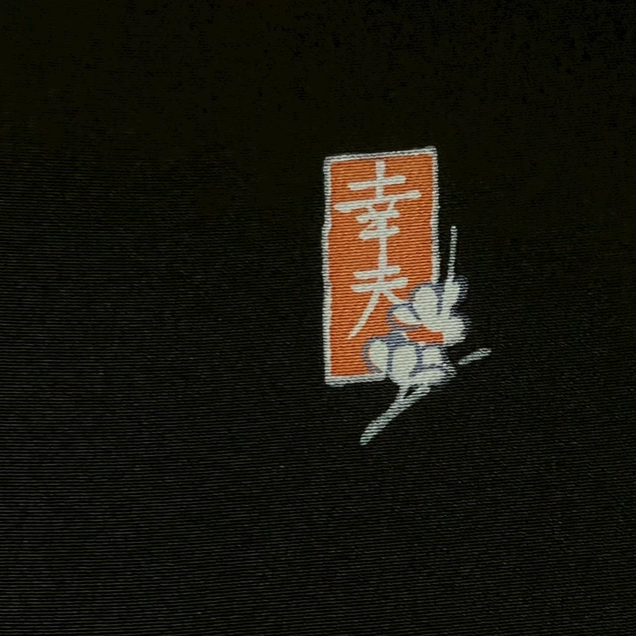 This is a black tomesode with a mandarin duck and running water design, artist's work, and five crests.