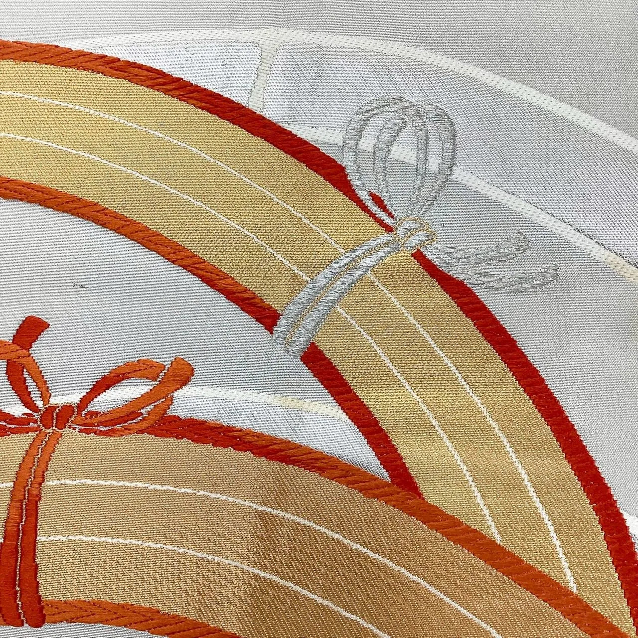 6201# Japanese Vintage Fukuro Obi Belt Kimono Fabric Silk Traditional Silver