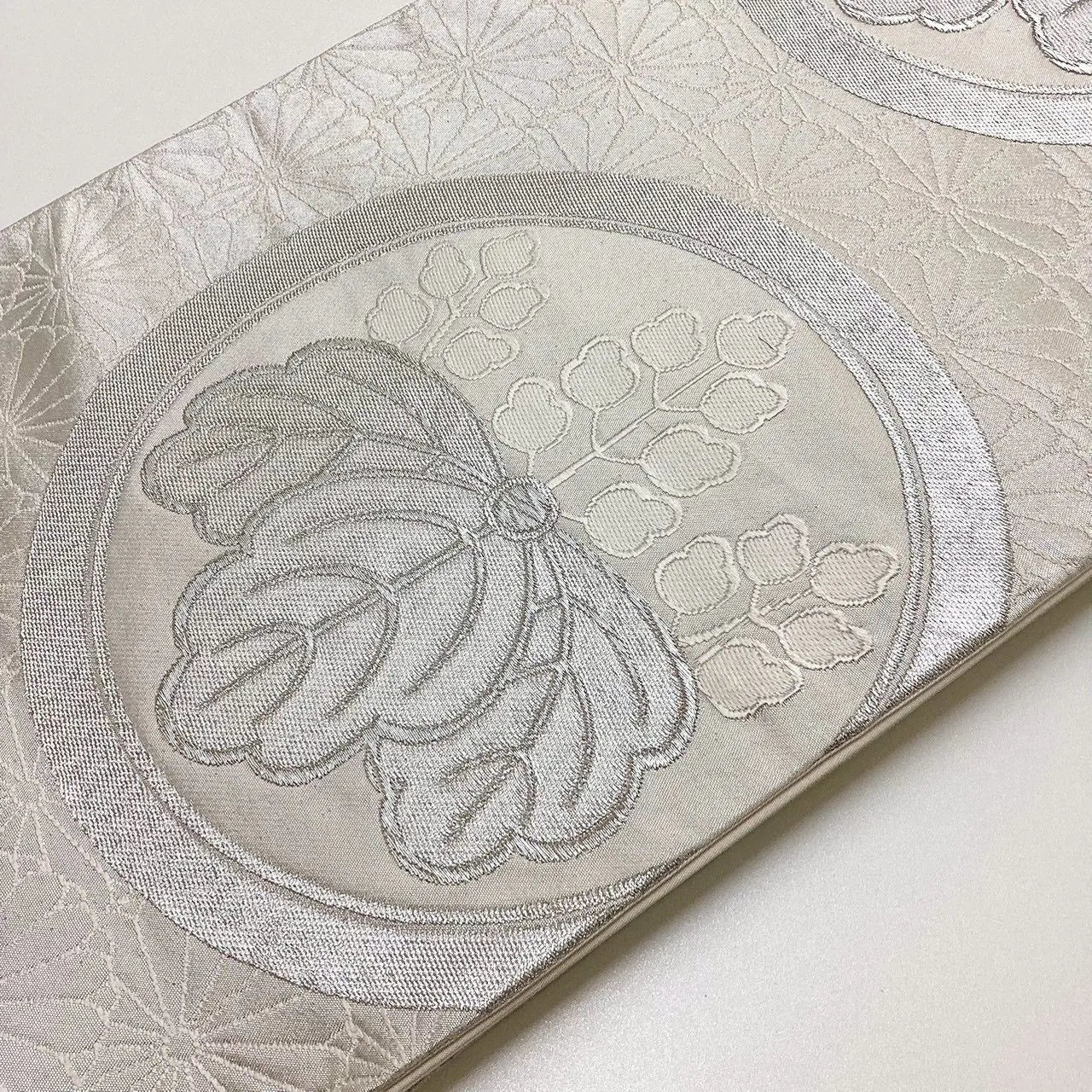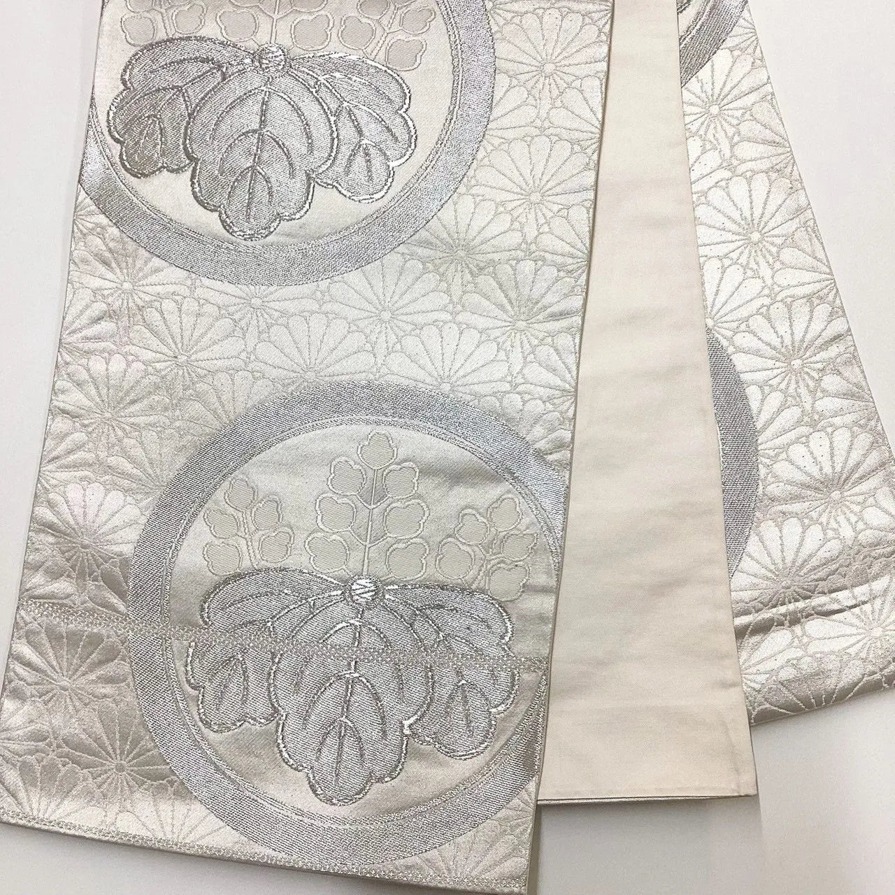 6206# Japanese Vintage Fukuro Obi Belt Kimono Fabric Silk Traditional Silver