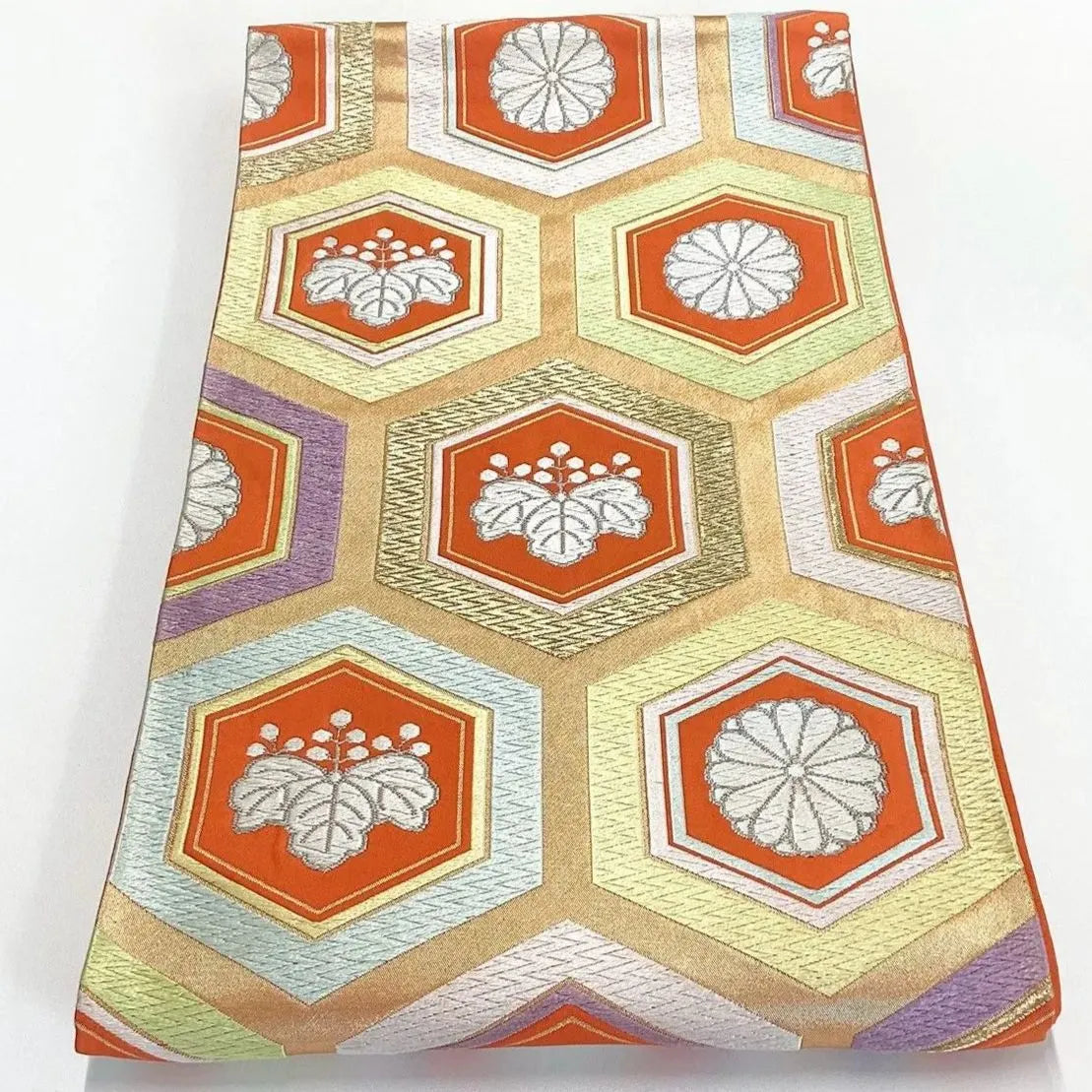 6247# Japanese Vintage Fukuro Obi Belt Kimono Fabric Silk Traditional Embroidery