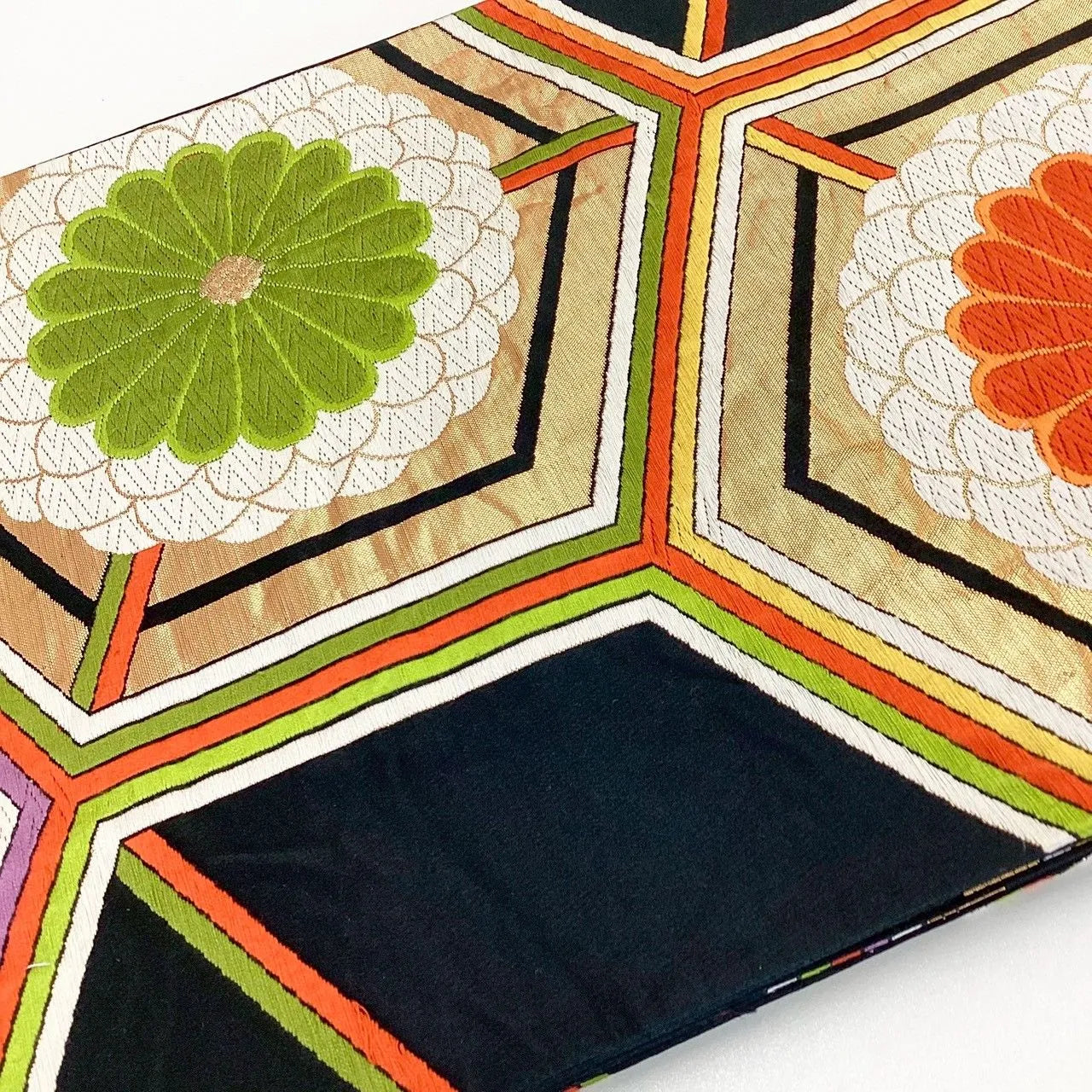 This is a pouch obi with chrysanthemum design and embroidery.
