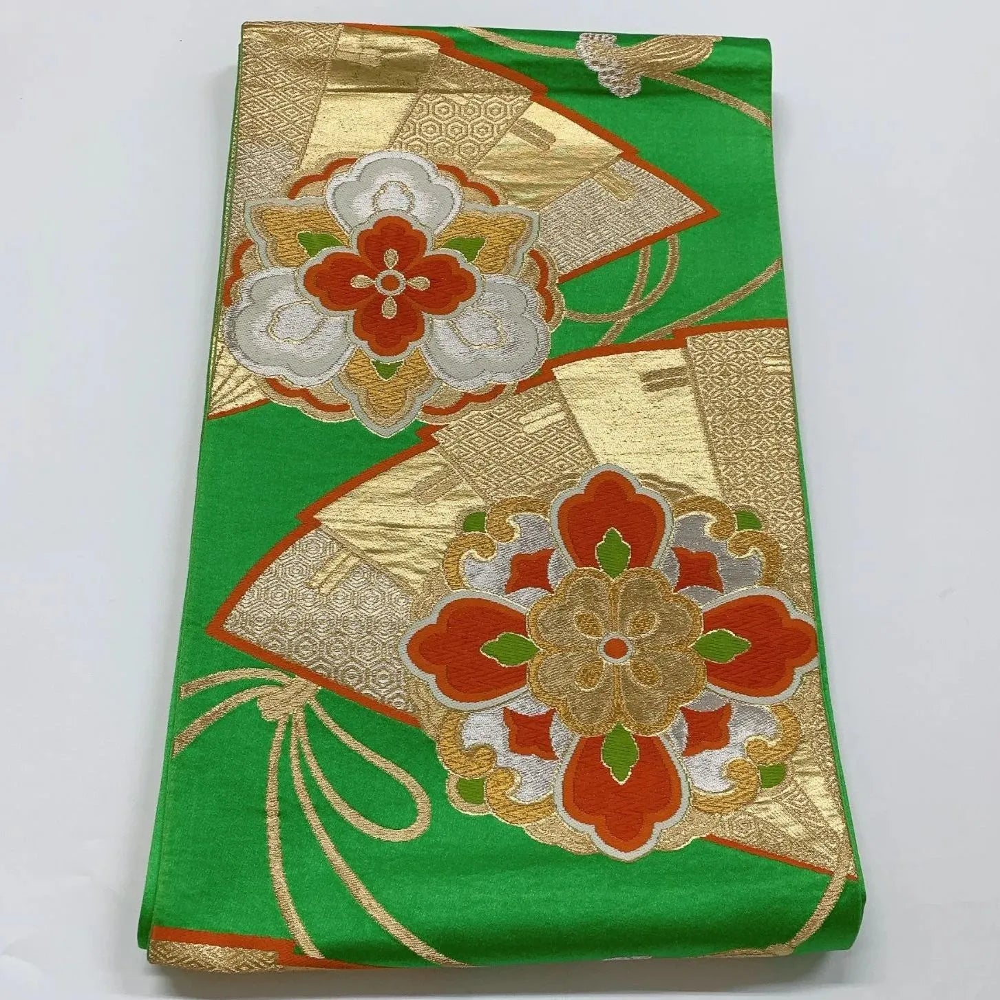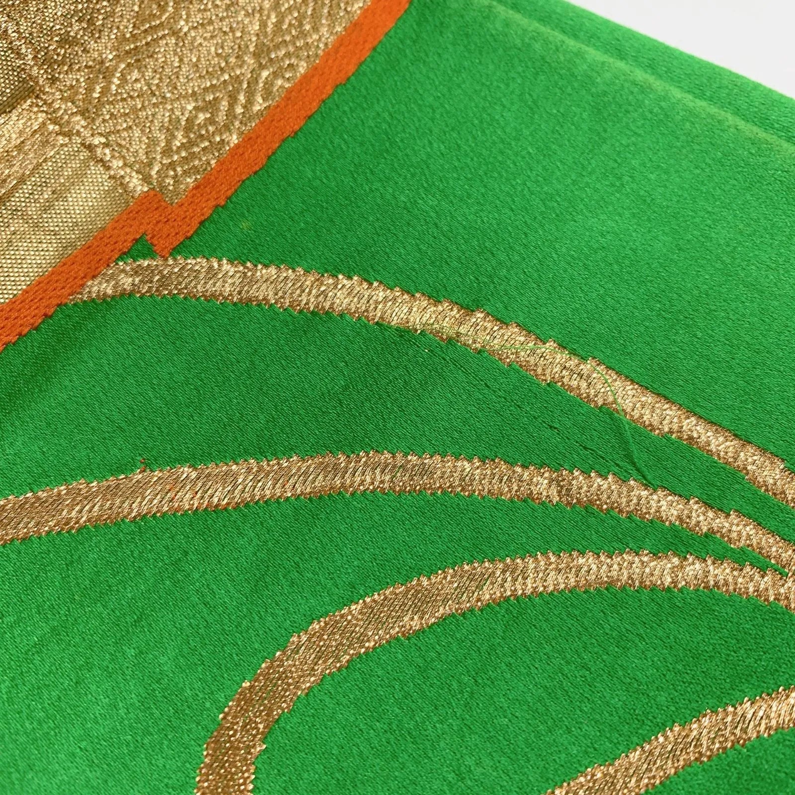 6280# Japanese Vintage Fukuro Obi Belt Kimono Fabric Silk Traditional Green