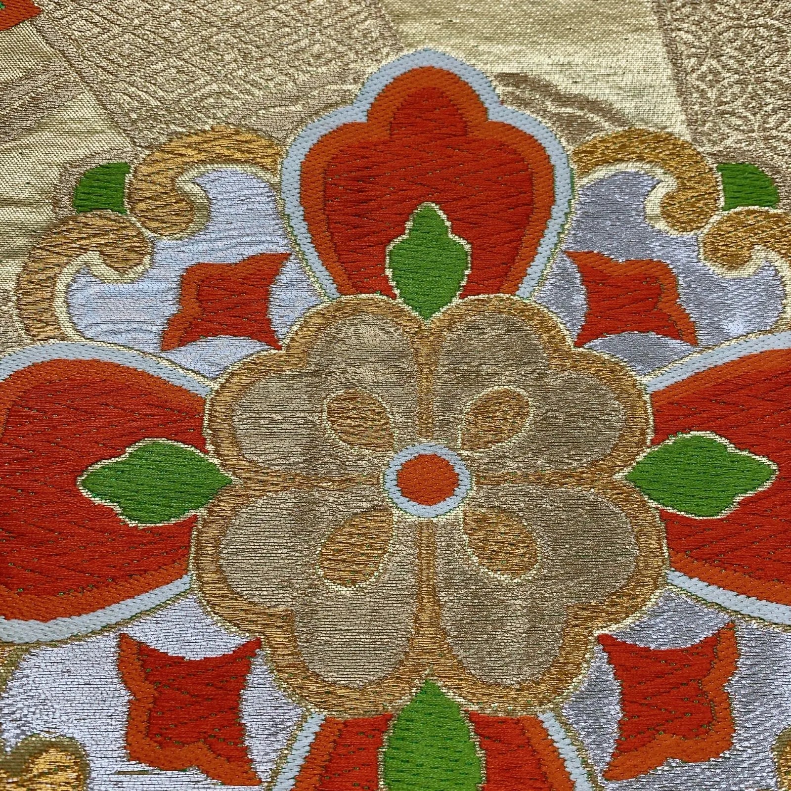 This is a pouch obi in gold and silver.