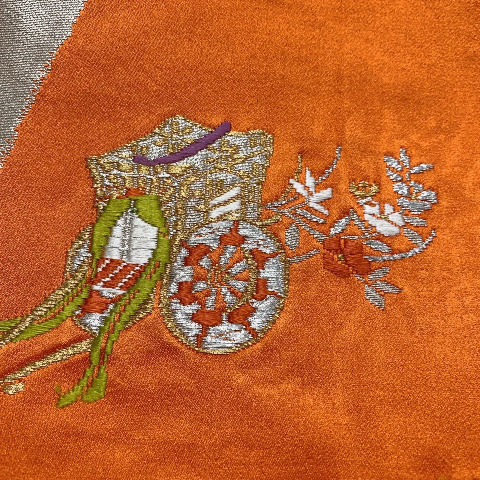 6283# Japanese Vintage Fukuro Obi Belt Kimono Fabric Silk Traditional Embroidery
