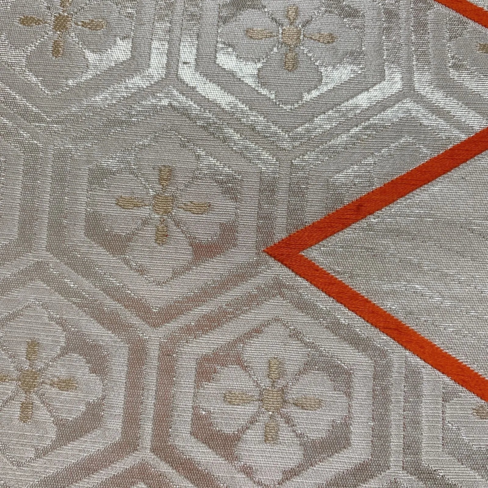 6287# Japanese Vintage Fukuro Obi Belt Kimono Fabric Silk Traditional Silver