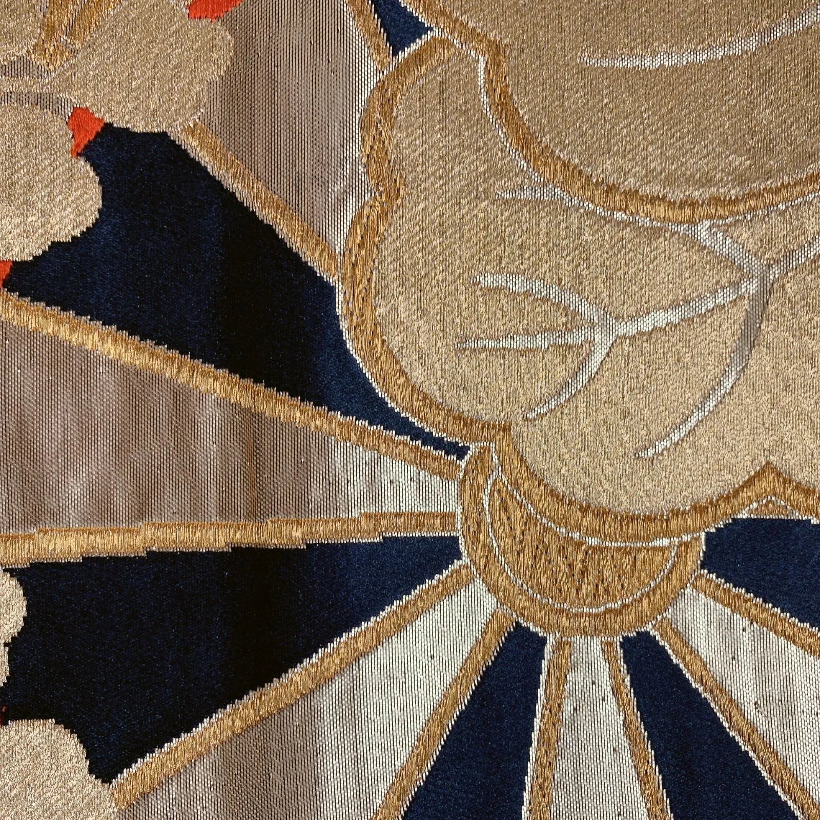 This is a pouch obi with gold and silver threads.