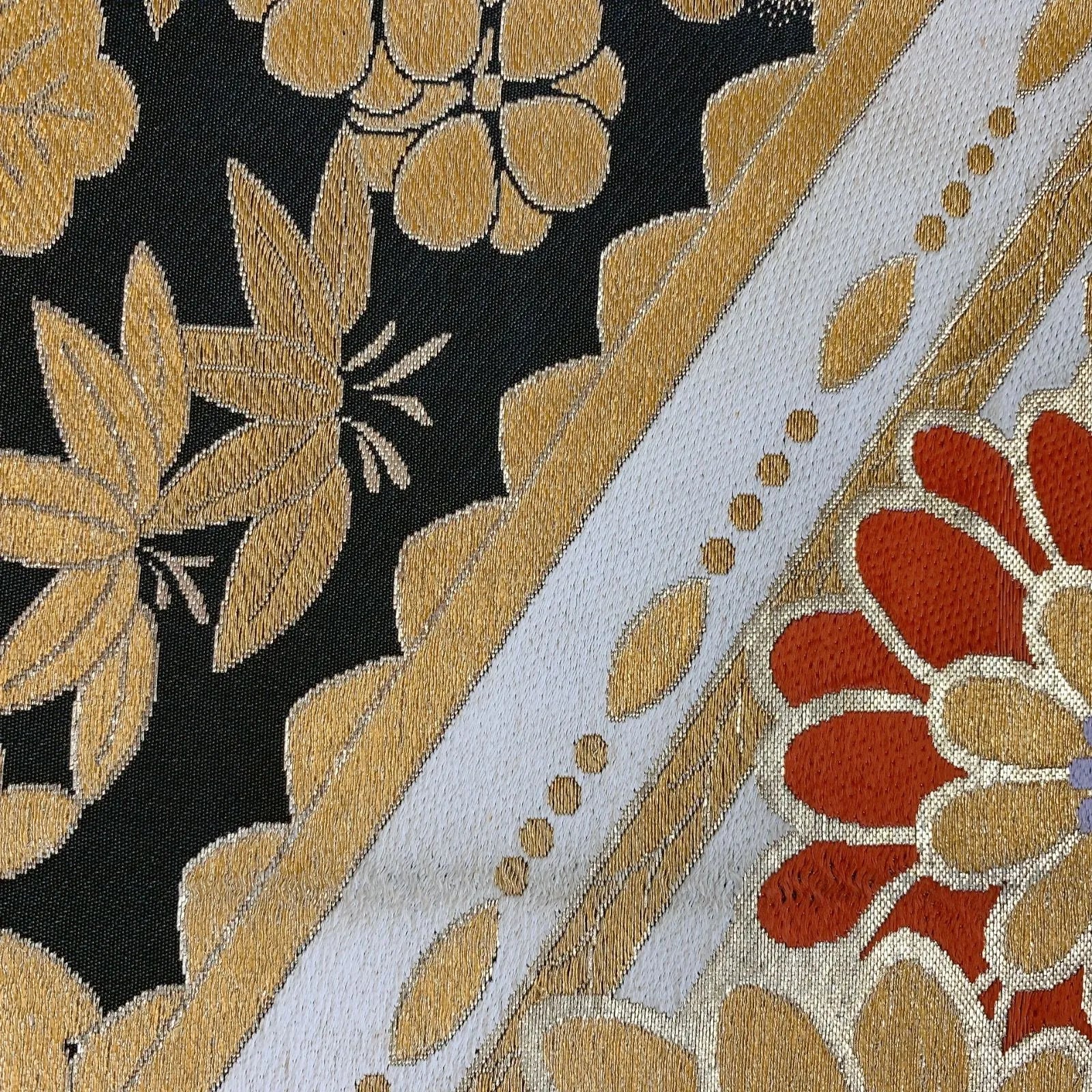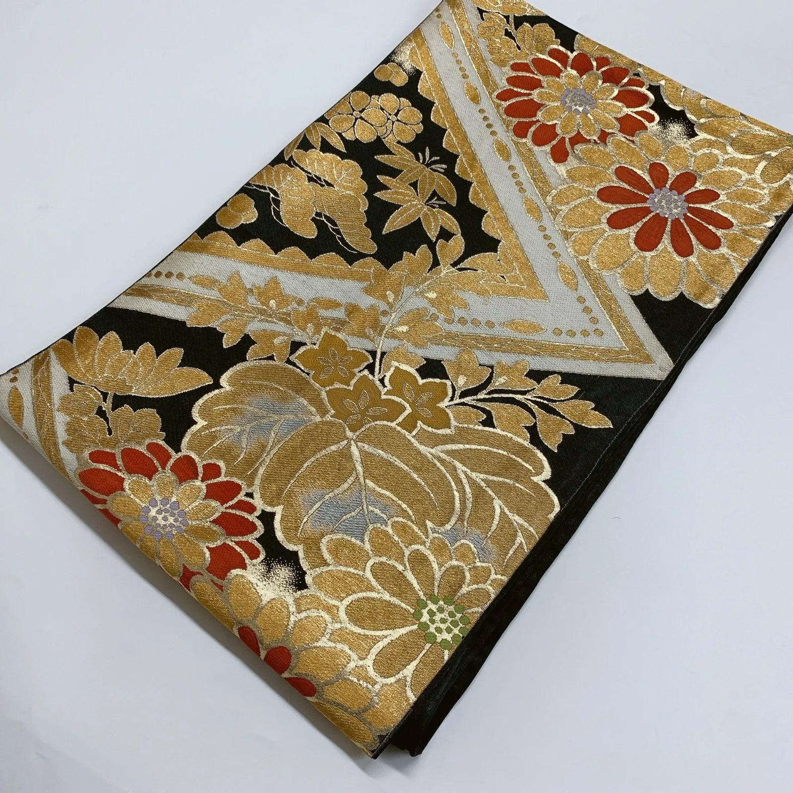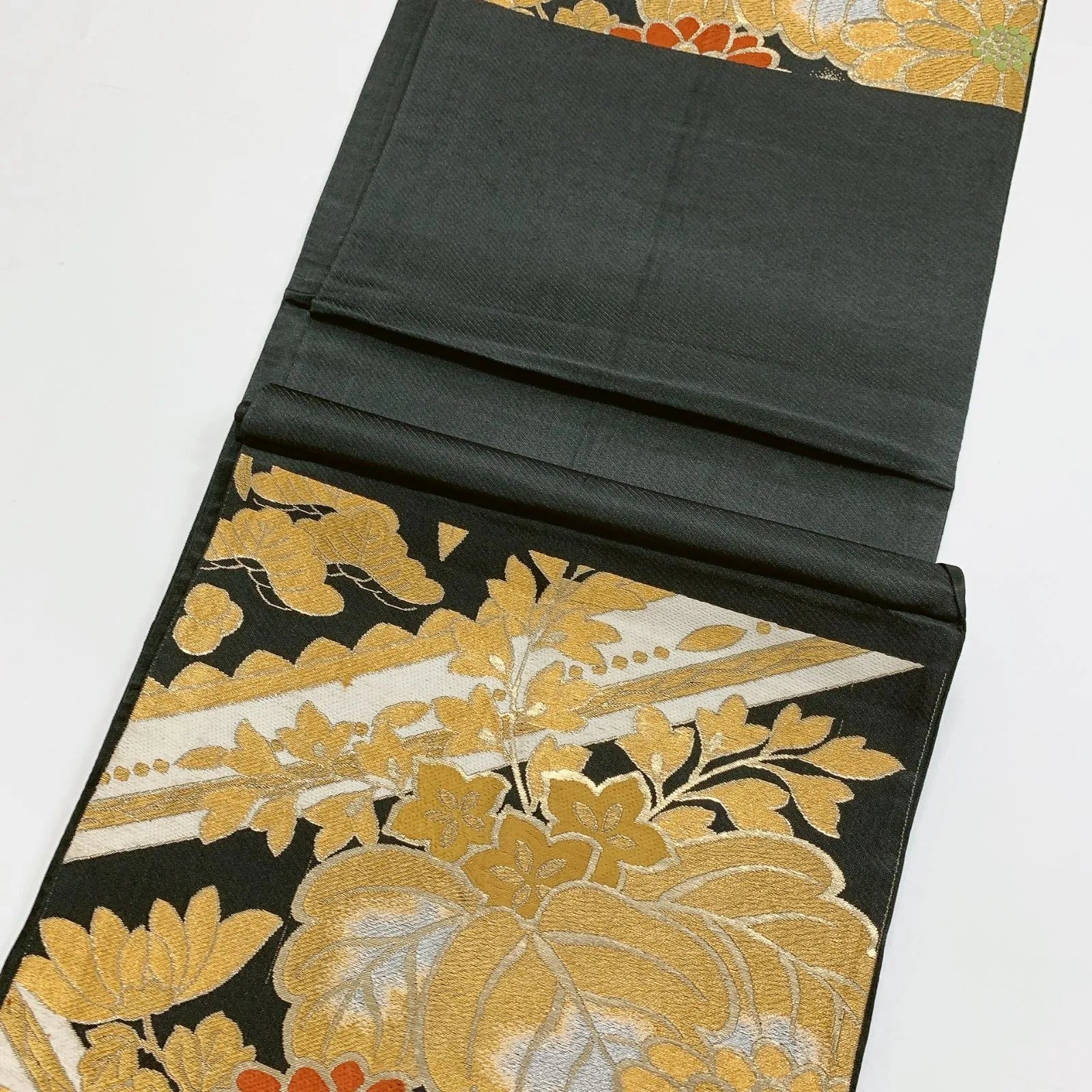 6290# Japanese Vintage Fukuro Obi Belt Kimono Fabric Silk Traditional Black