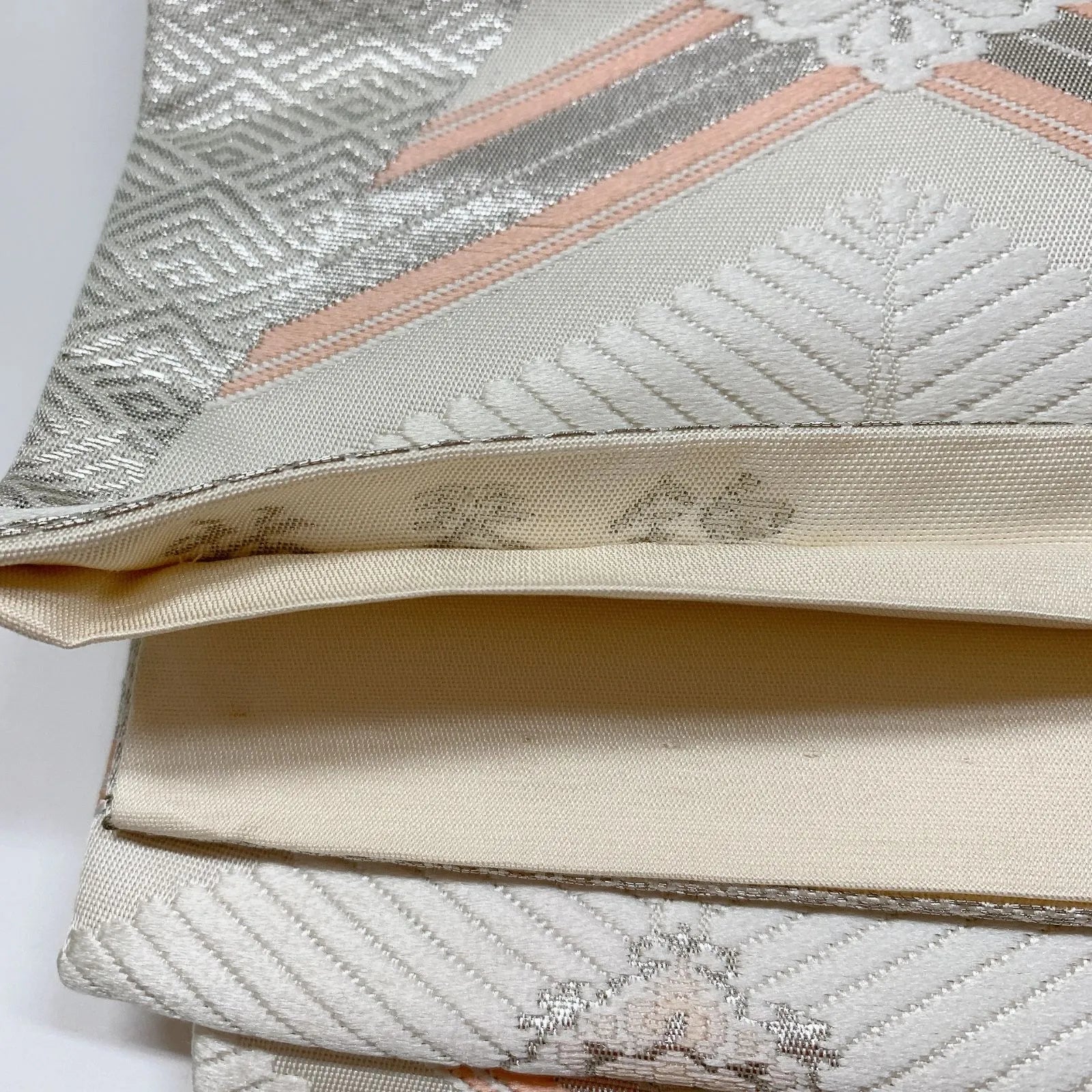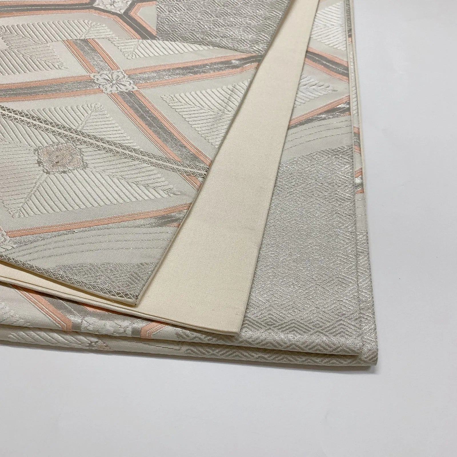 6304# Japanese Vintage Fukuro Obi Belt Kimono Fabric Silk Traditional Silver