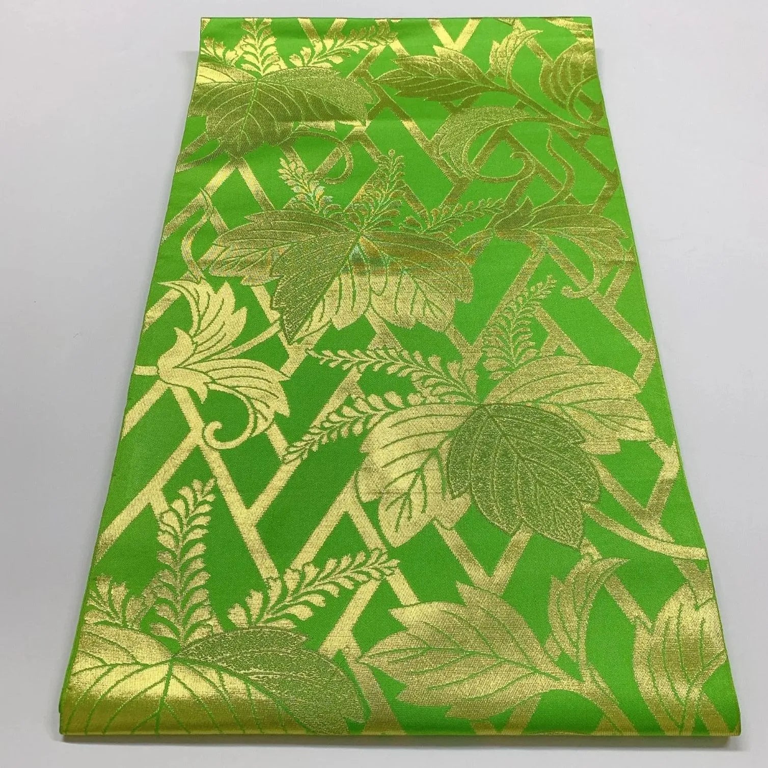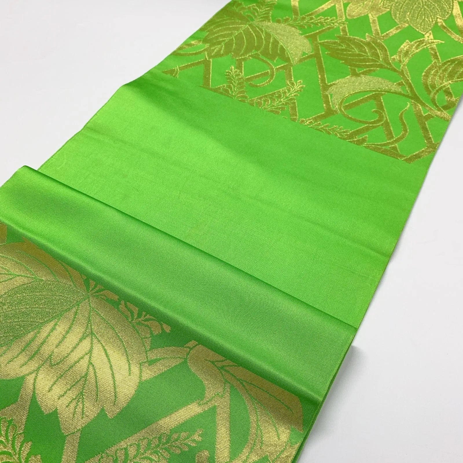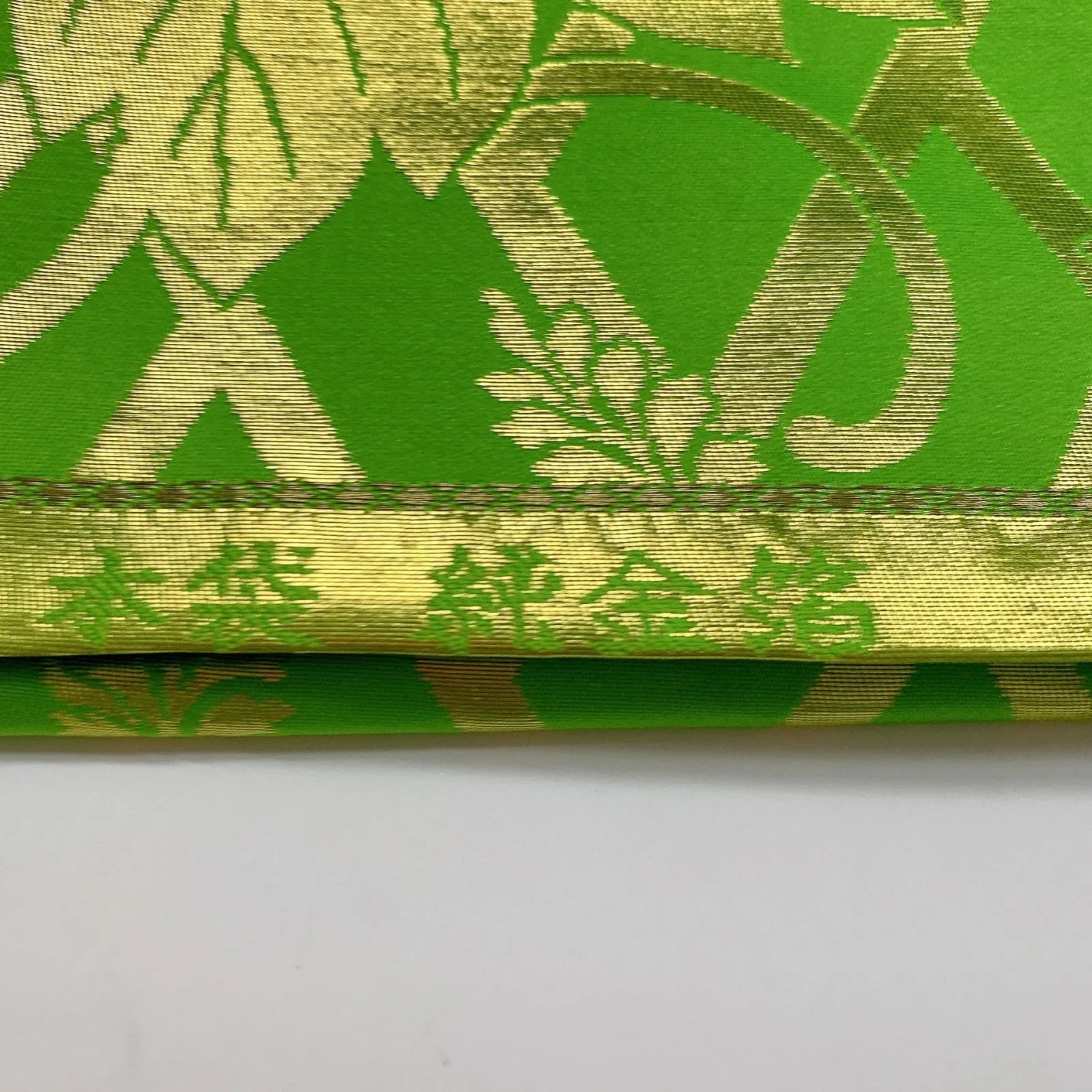 6314# Japanese Vintage Fukuro Obi Belt Kimono Fabric Silk Traditional Green