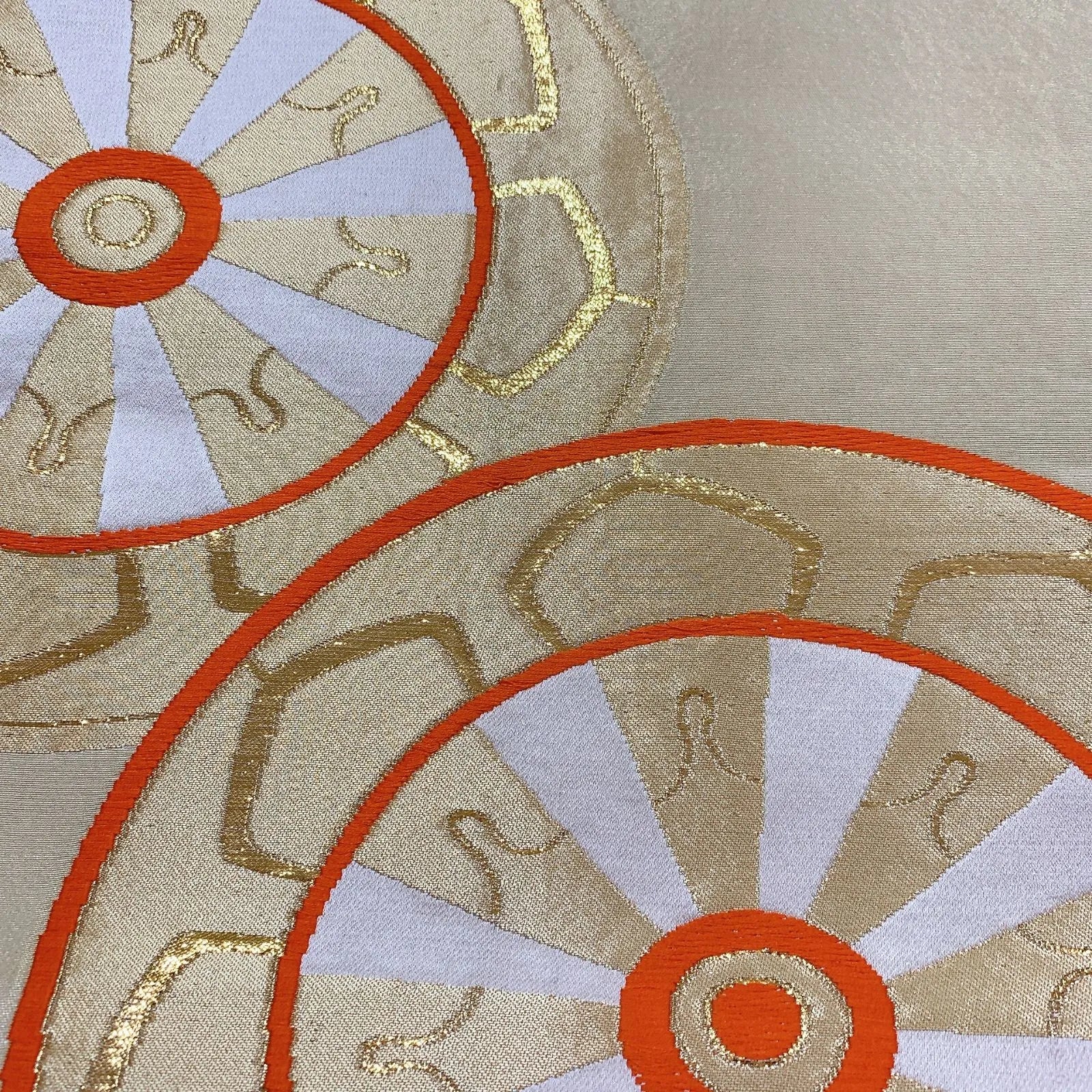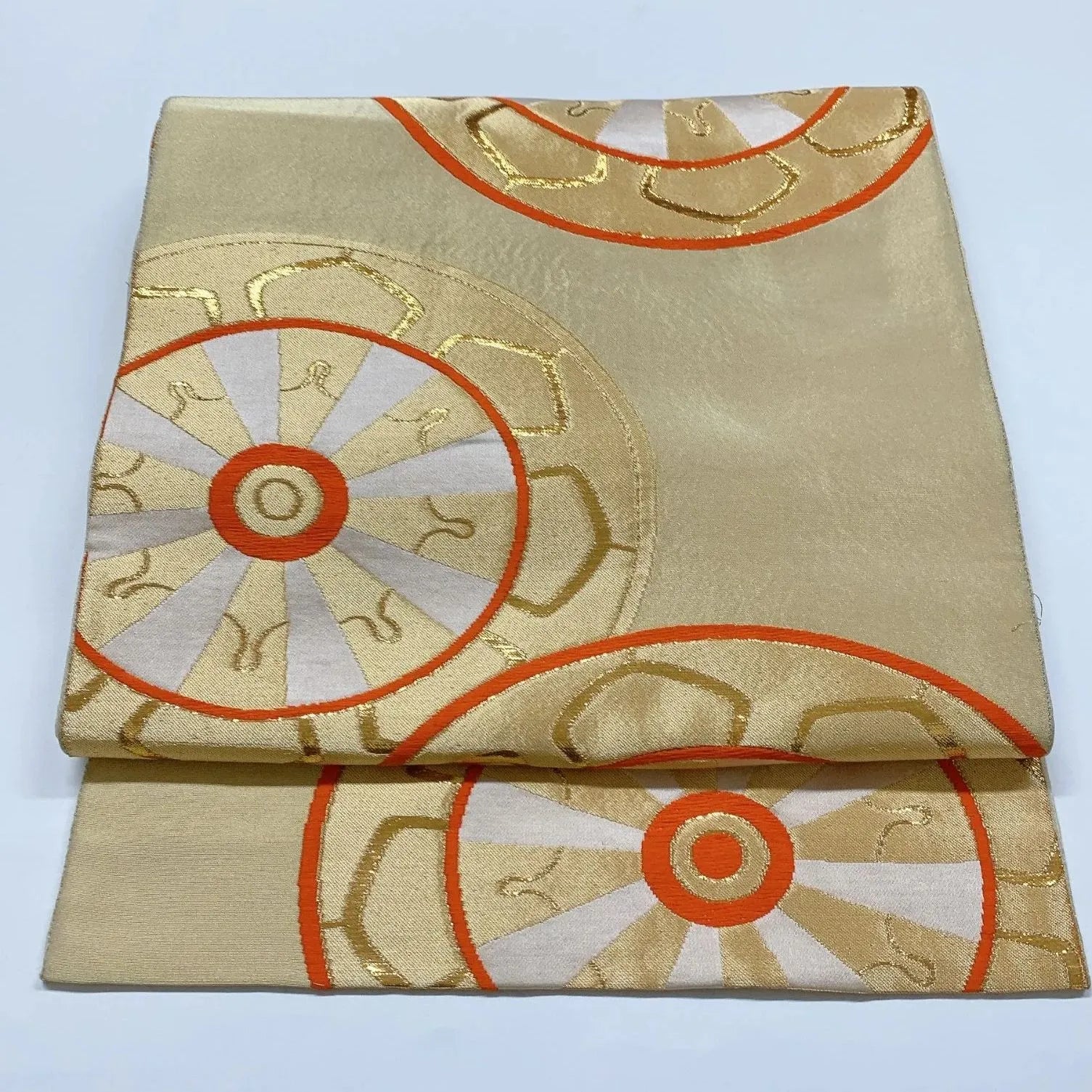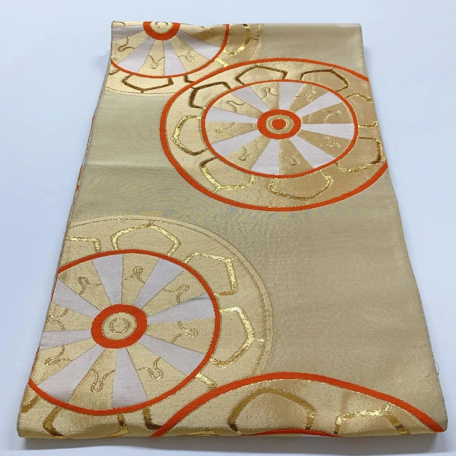 6346# Japanese Vintage Fukuro Obi Belt Kimono Fabric Silk Traditional Gold