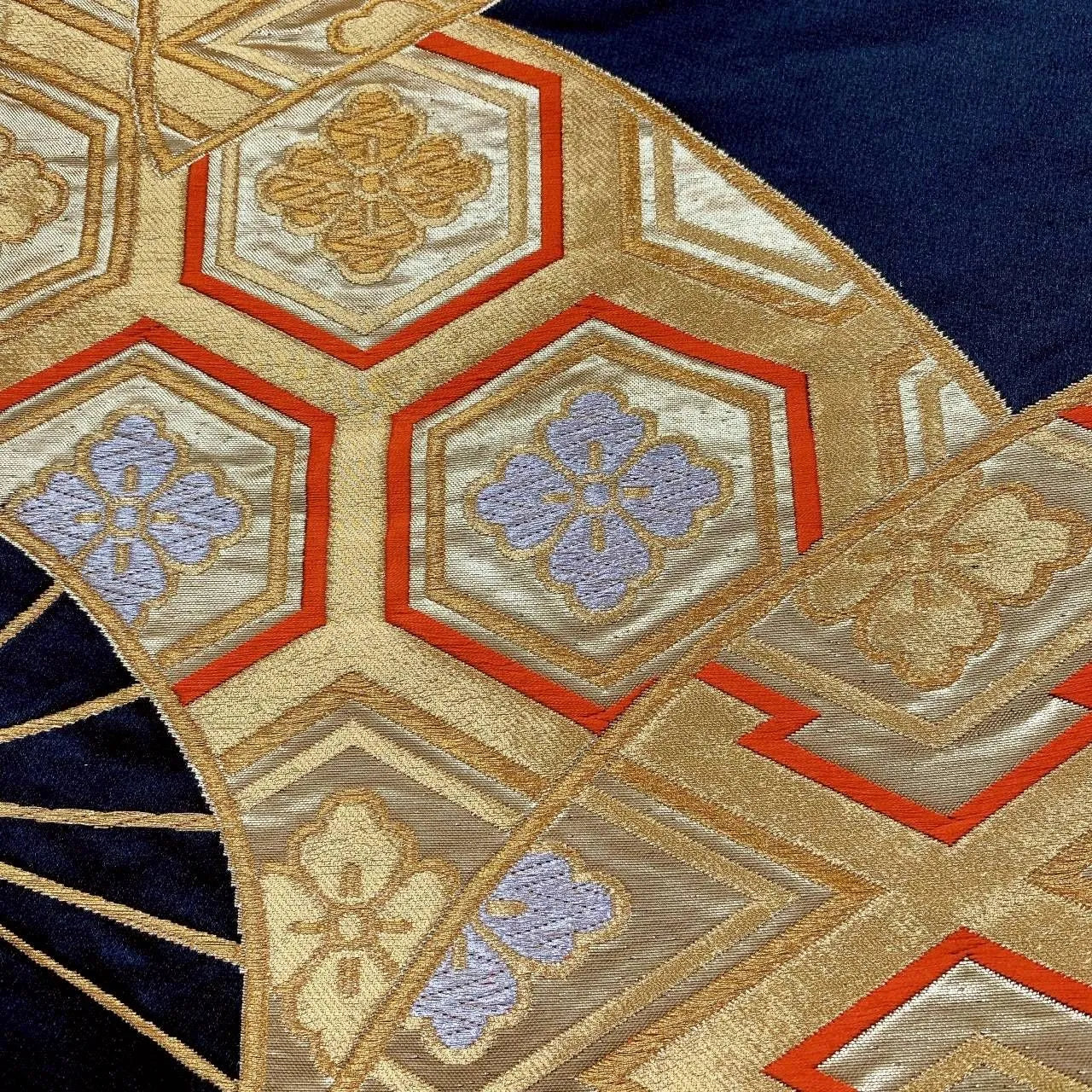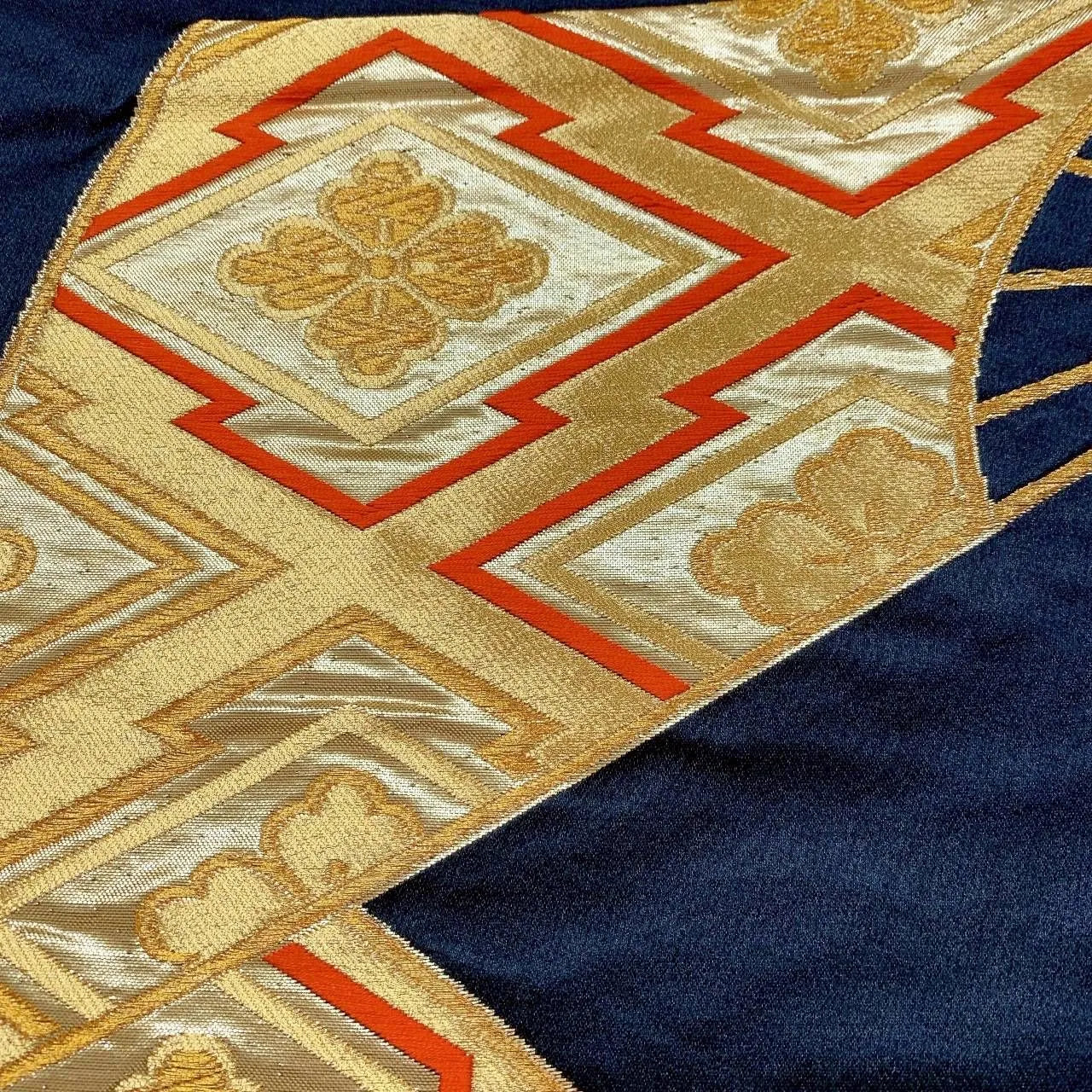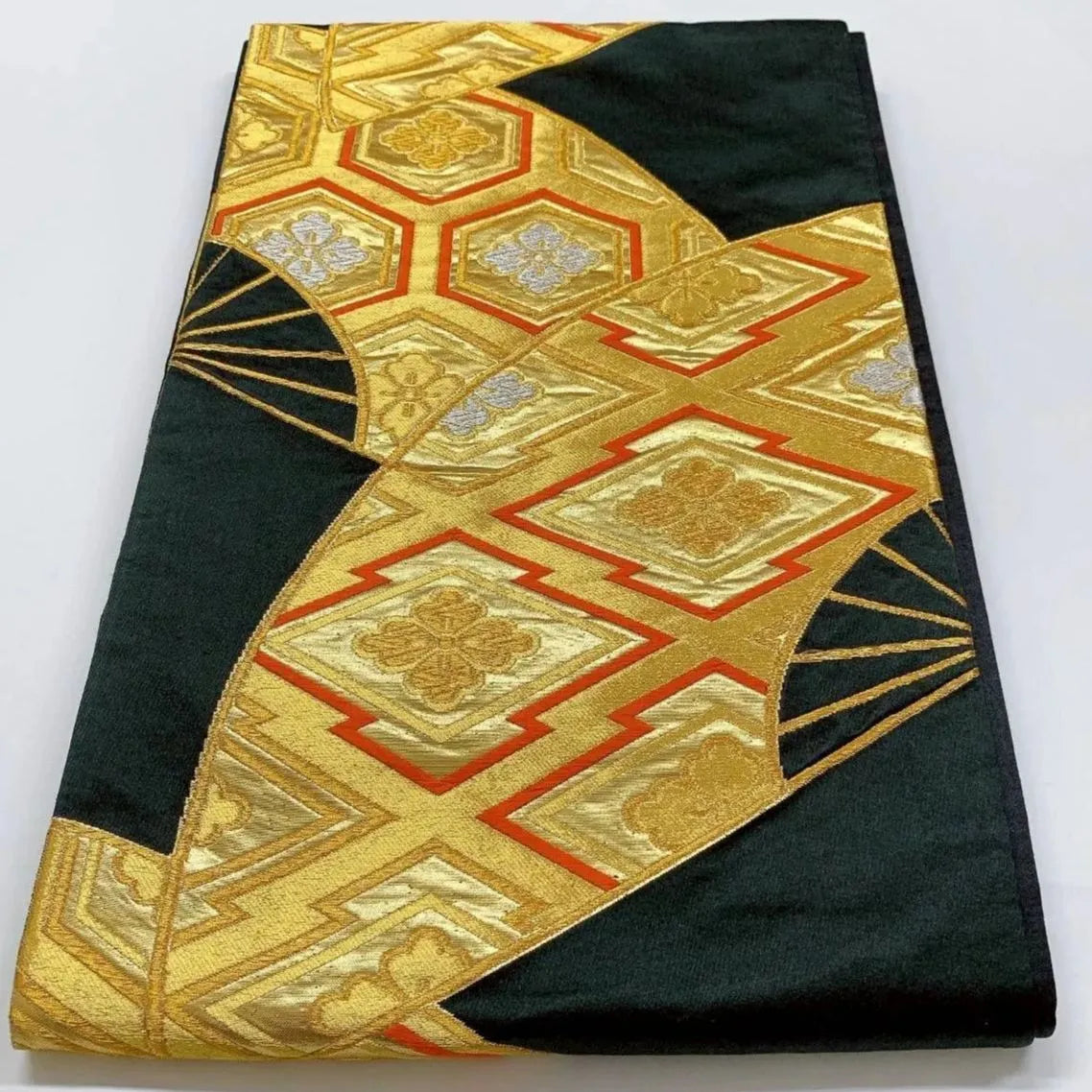6364# Japanese Vintage Fukuro Obi Belt Kimono Fabric Silk Traditional Black