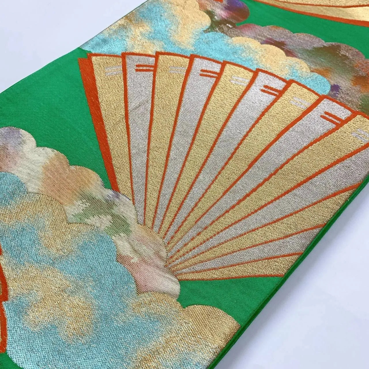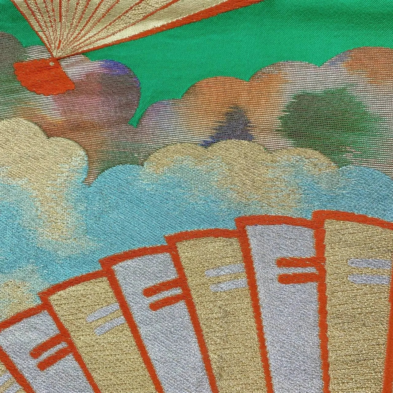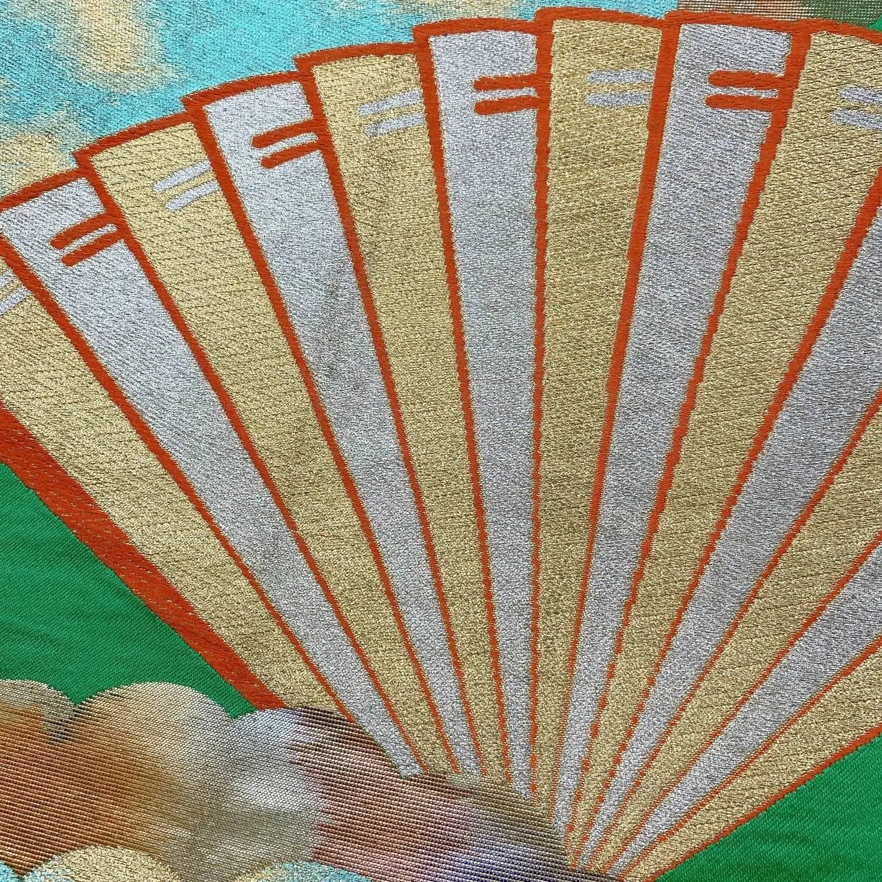This is a pouch obi with a fan and cloud design.