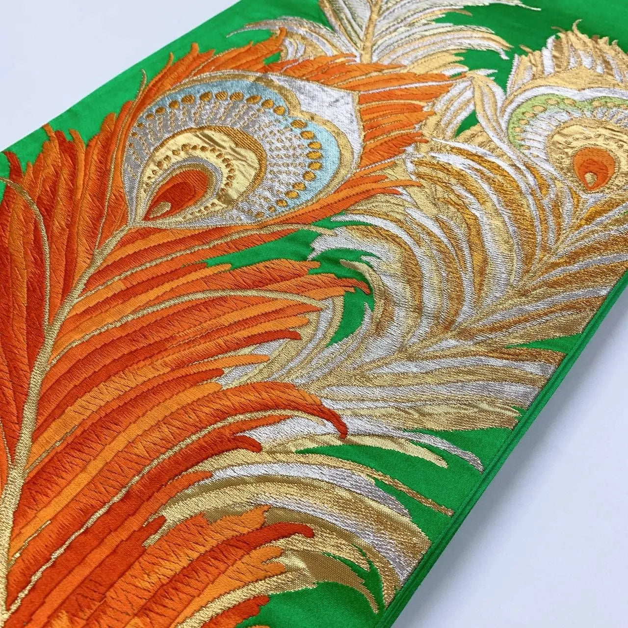 6375# Japanese Vintage Fukuro Obi Belt Kimono Fabric Silk Traditional Embroidery