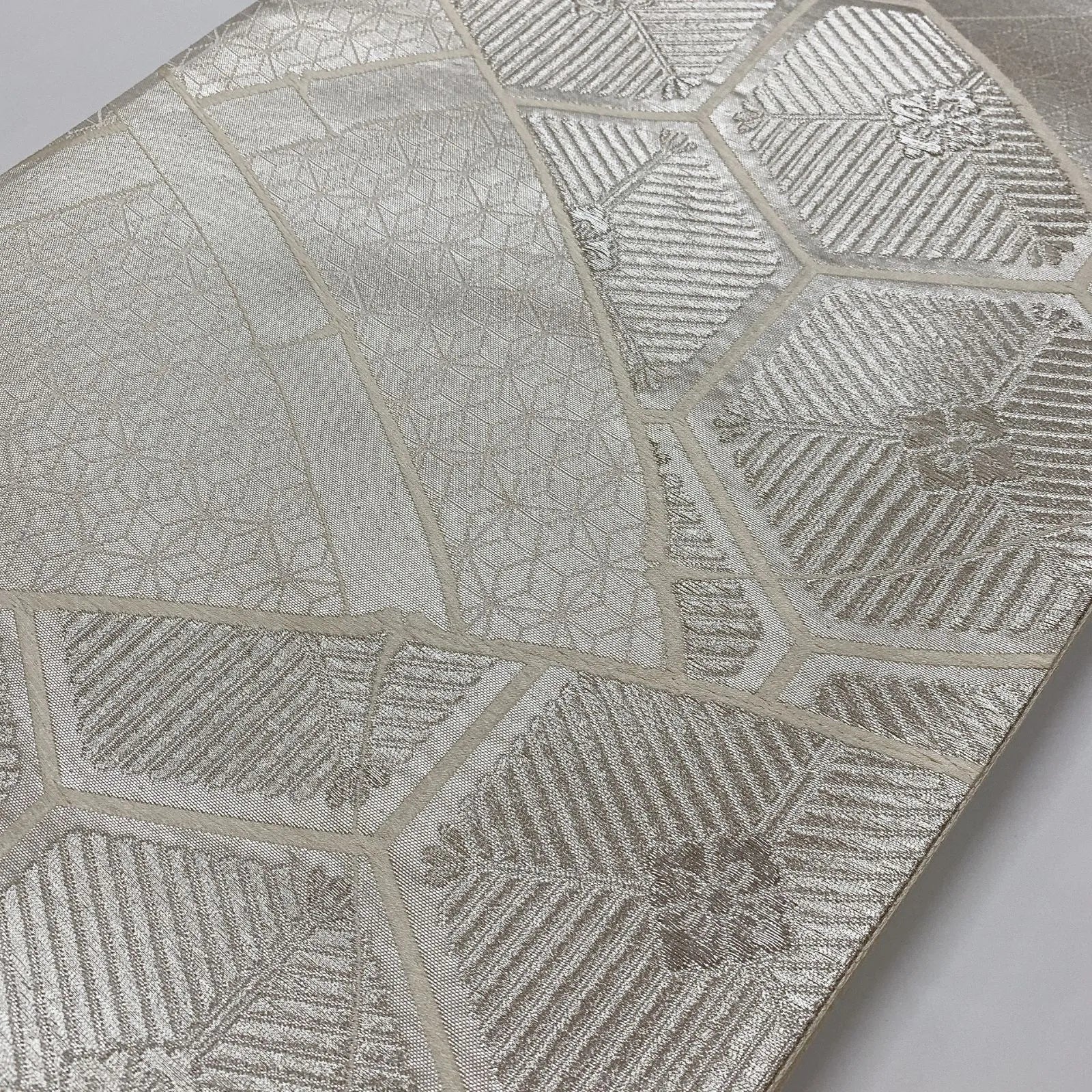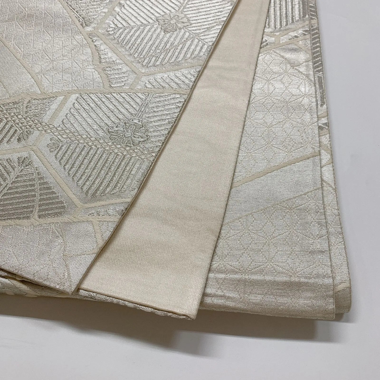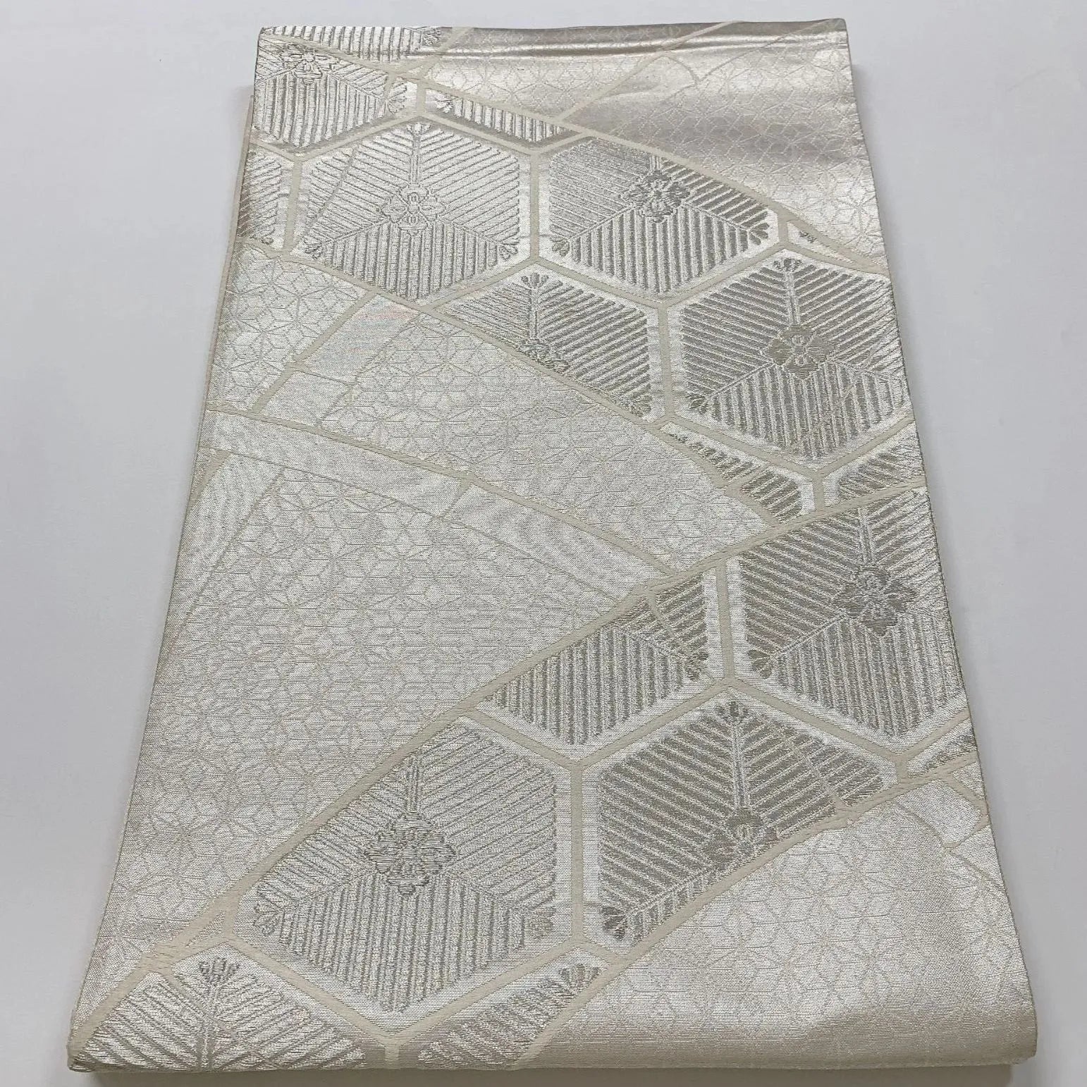 6549# Japanese Vintage Fukuro Obi Belt Kimono Fabric Silk Traditional Silver