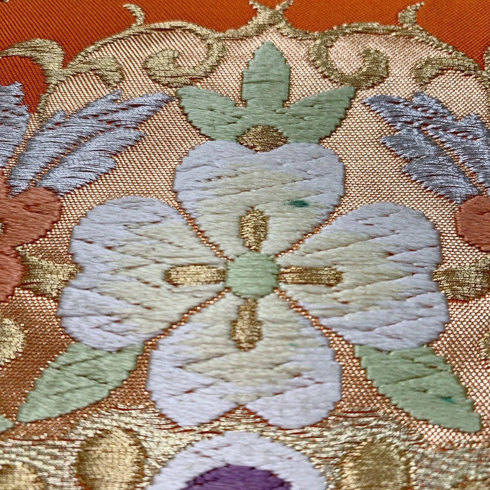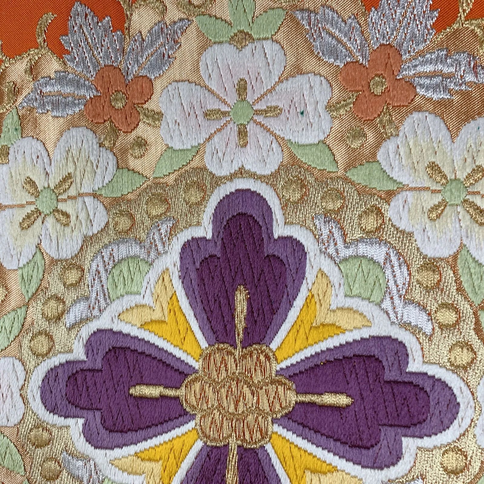 6552# Japanese Vintage Fukuro Obi Belt Kimono Fabric Silk Traditional Embroidery