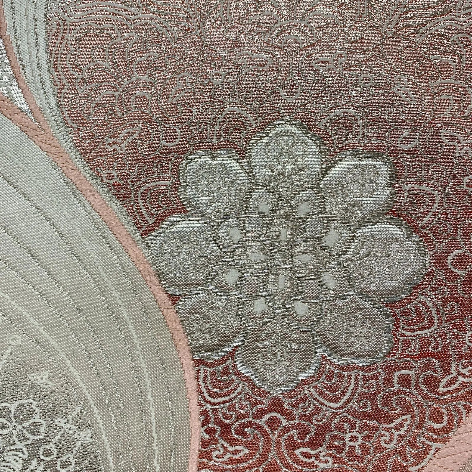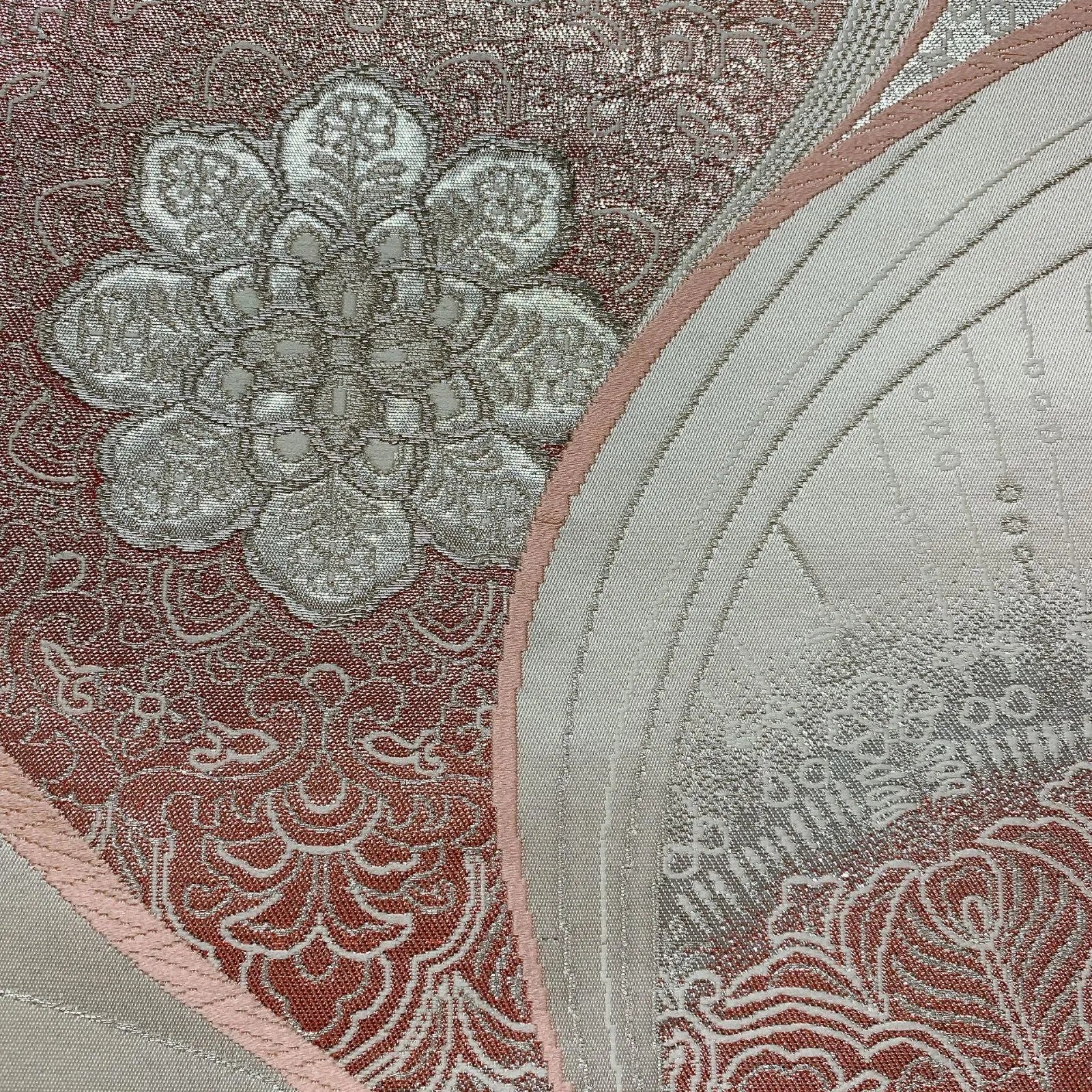 6555# Japanese Vintage Fukuro Obi Belt Kimono Fabric Silk Traditional Silver