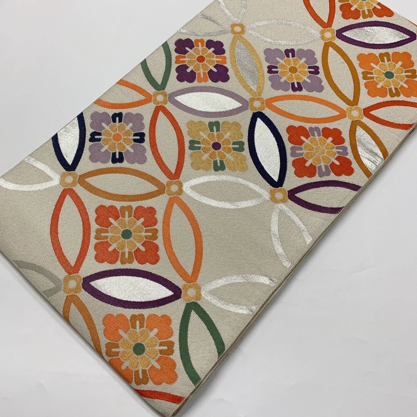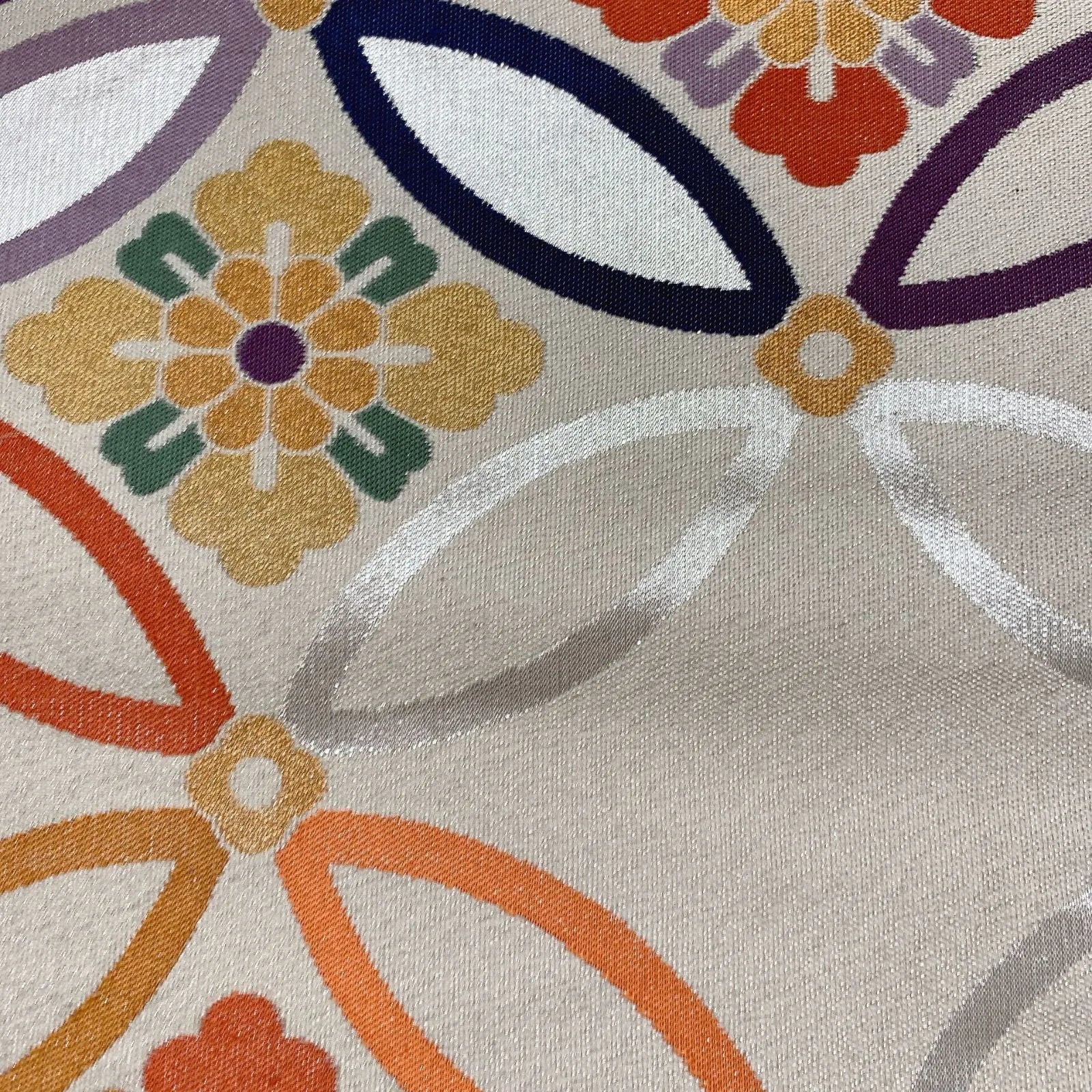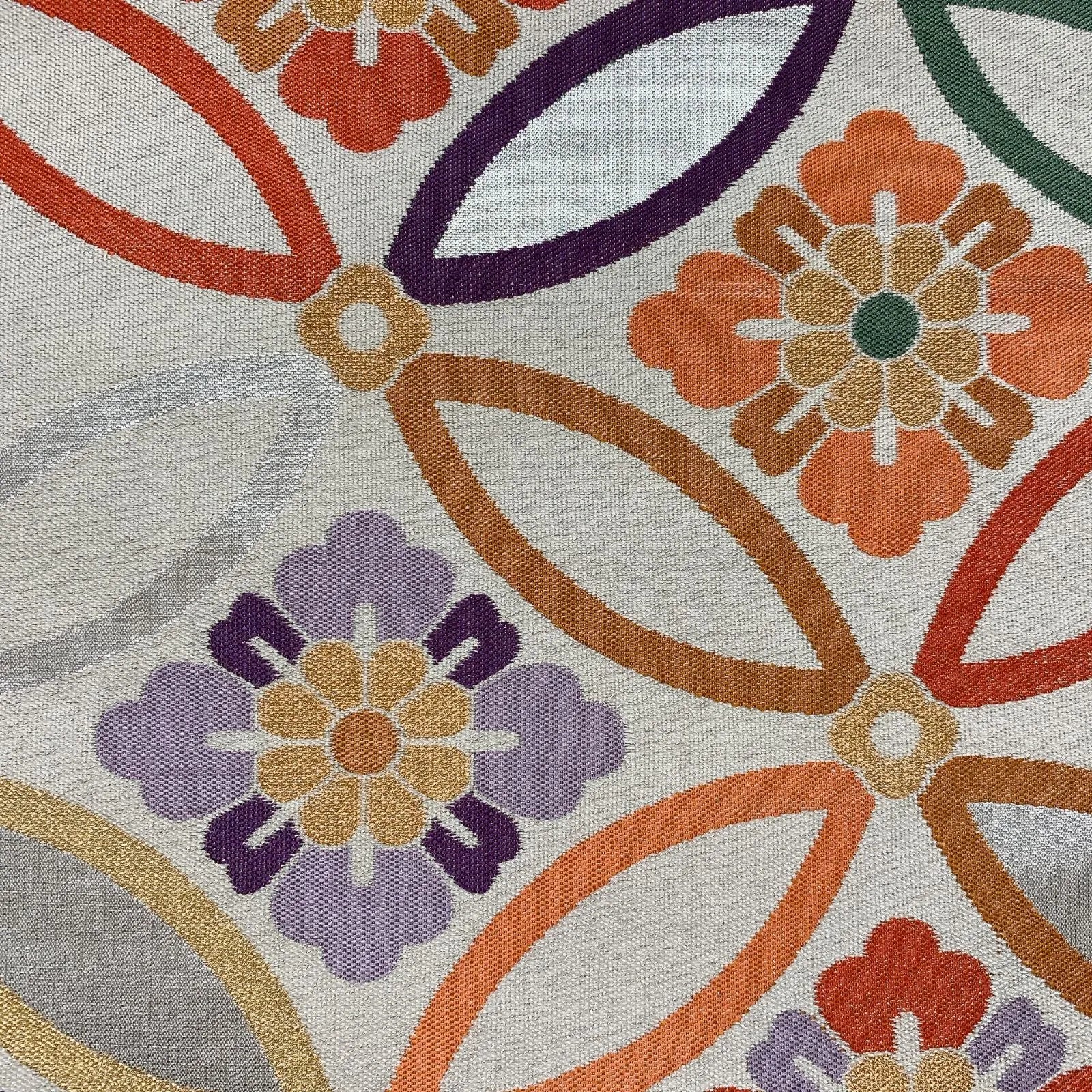 6565# Japanese Vintage Fukuro Obi Belt Kimono Fabric Silk Traditional Silver