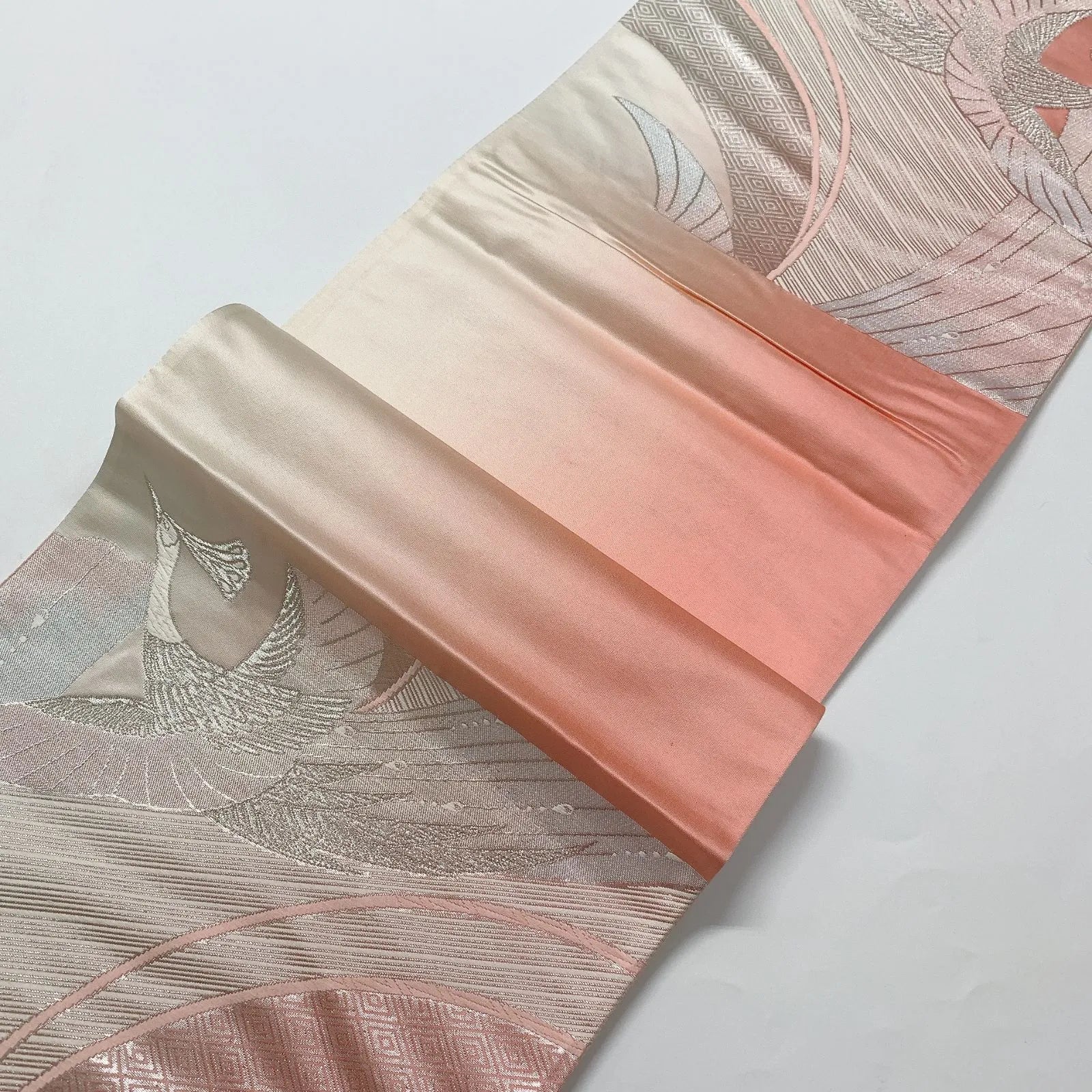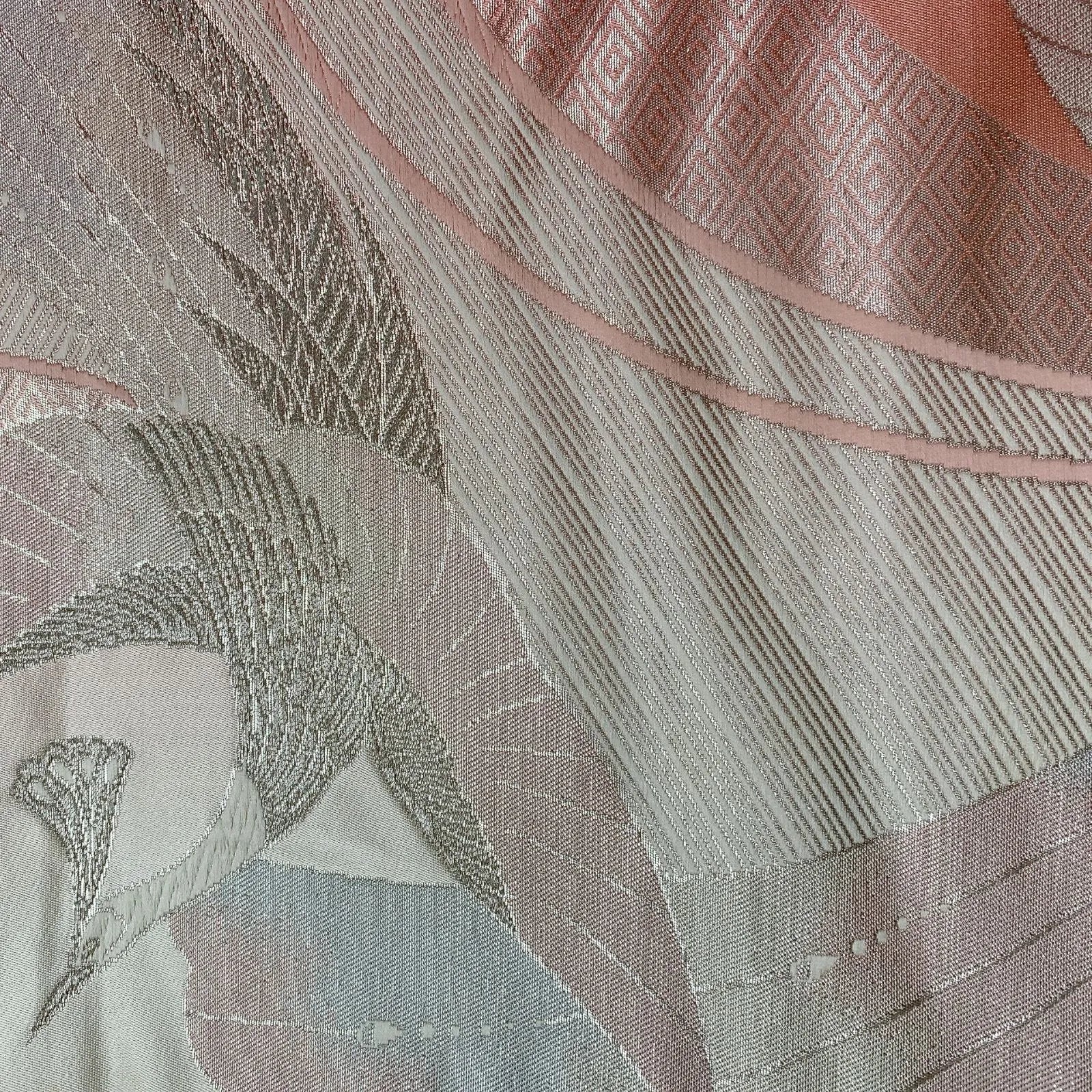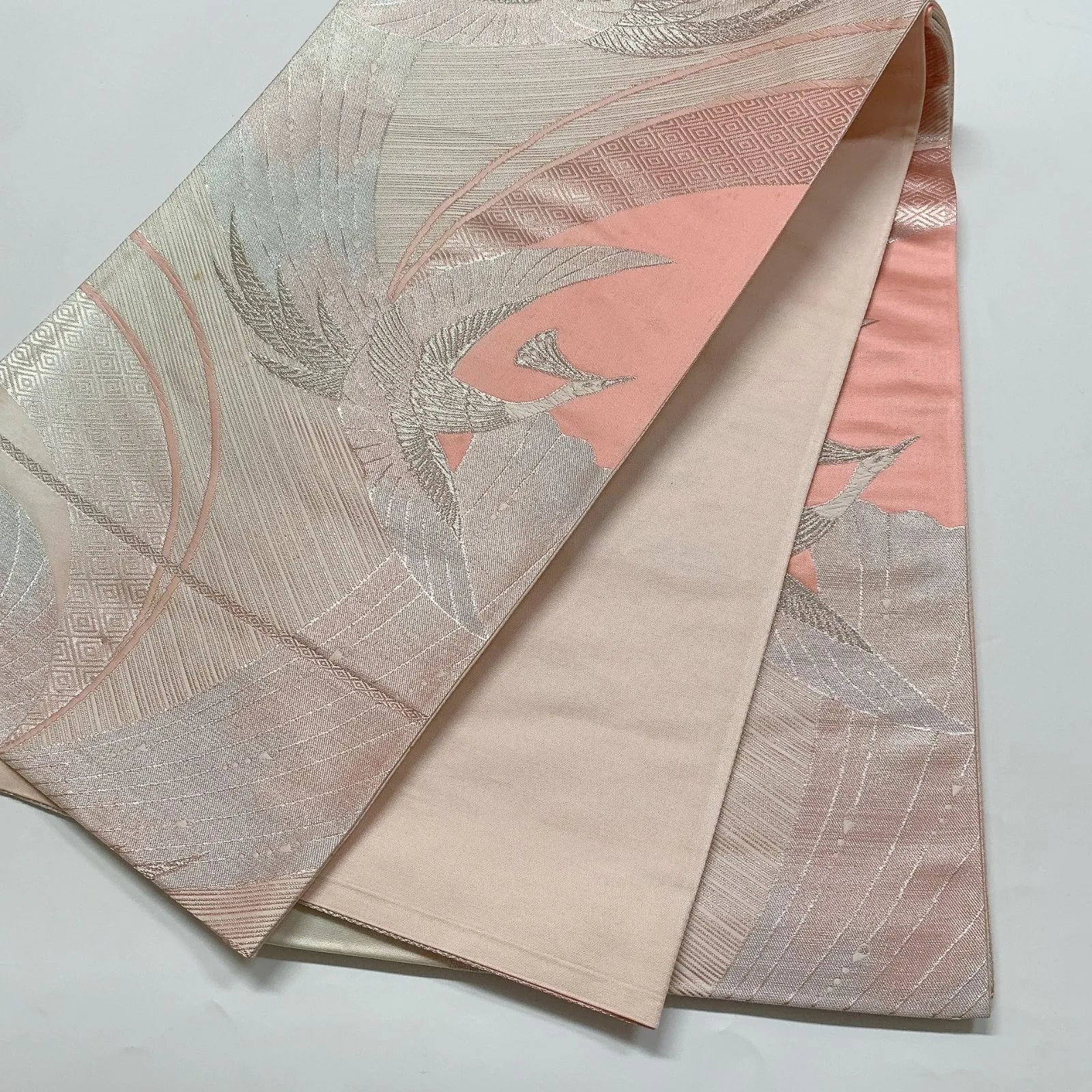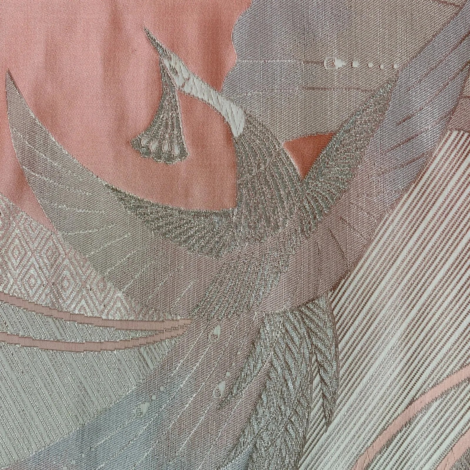 6568# Japanese Vintage Fukuro Obi Belt Kimono Fabric Silk Traditional Silver