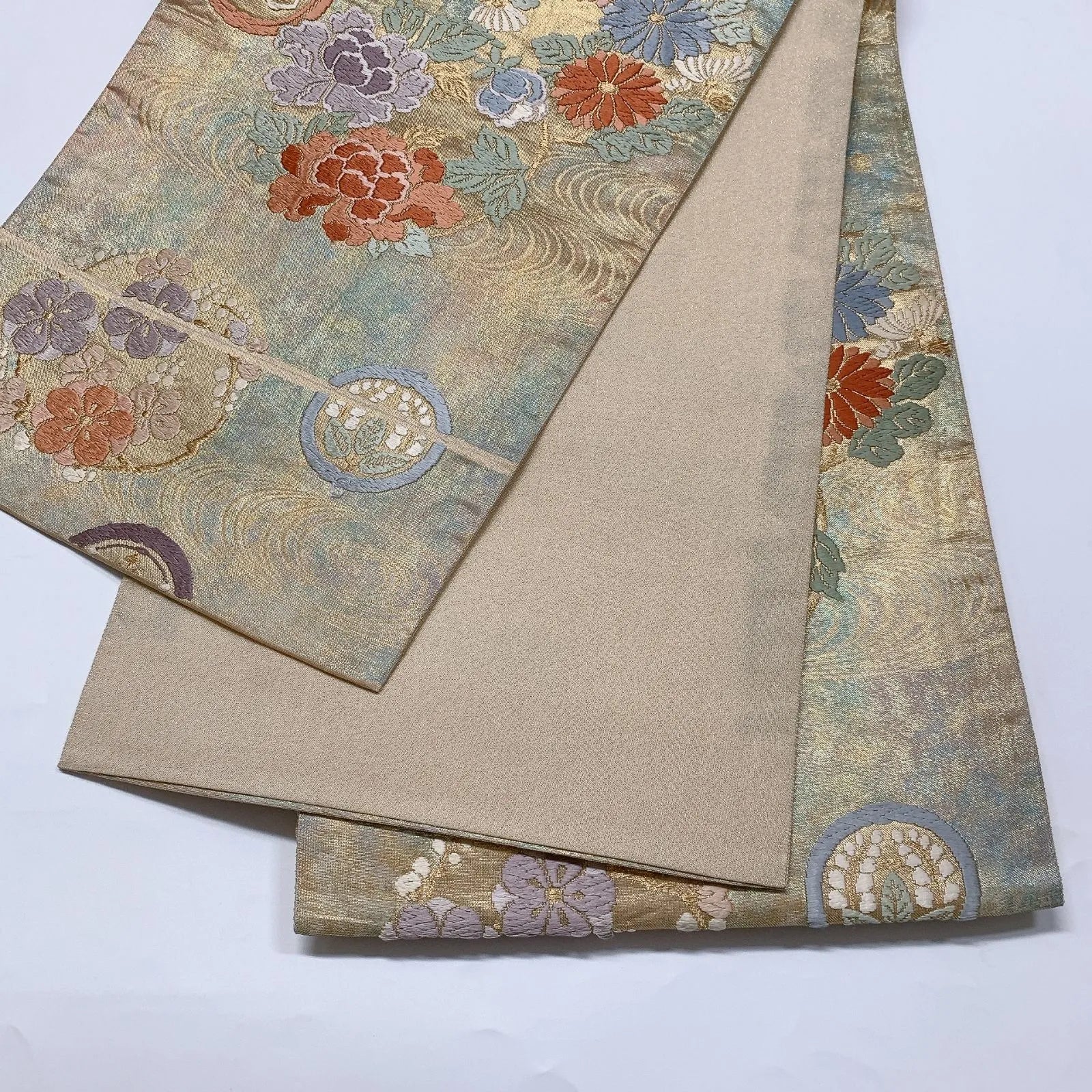 6572# Japanese Vintage Fukuro Obi Belt Kimono Fabric Silk Traditional Embroidery