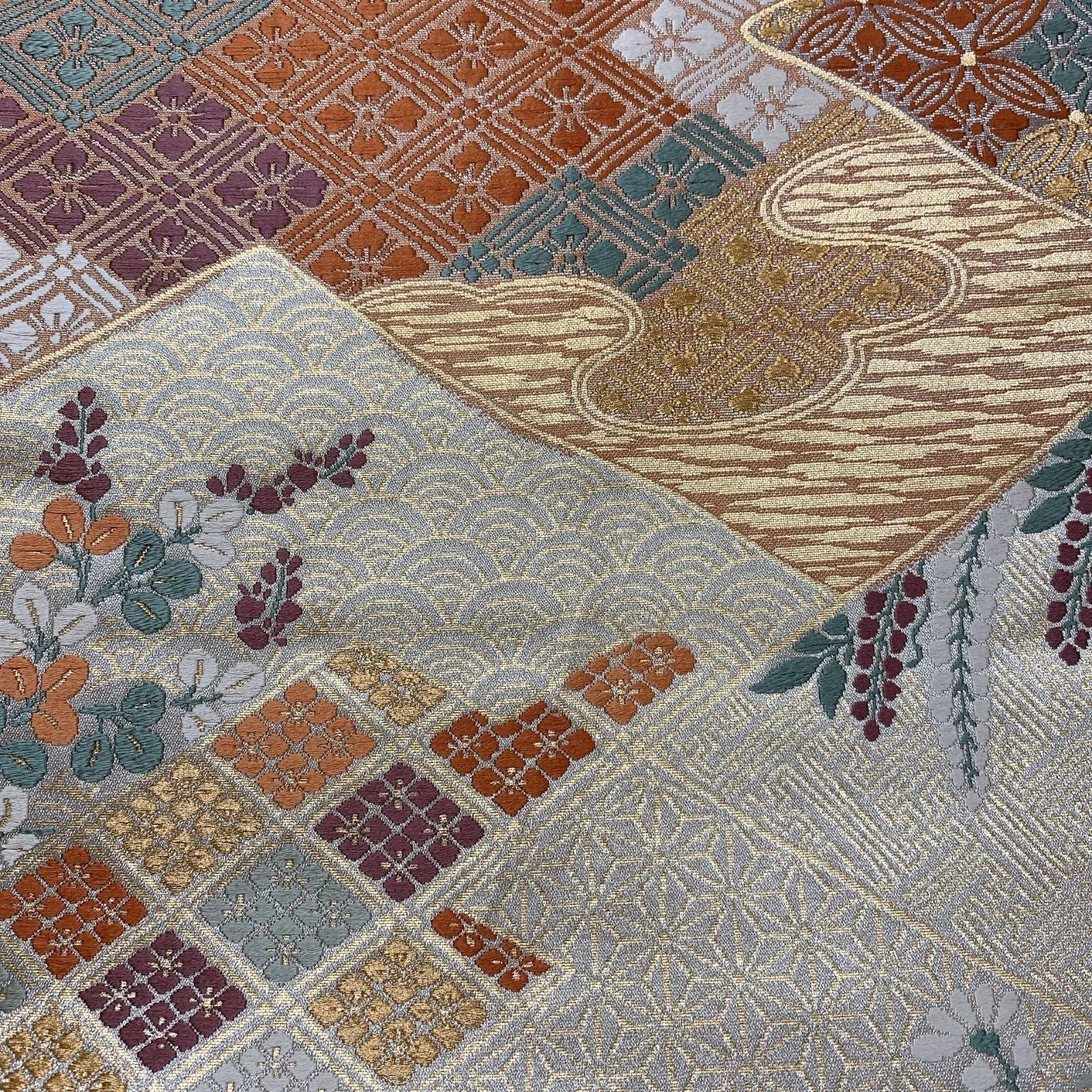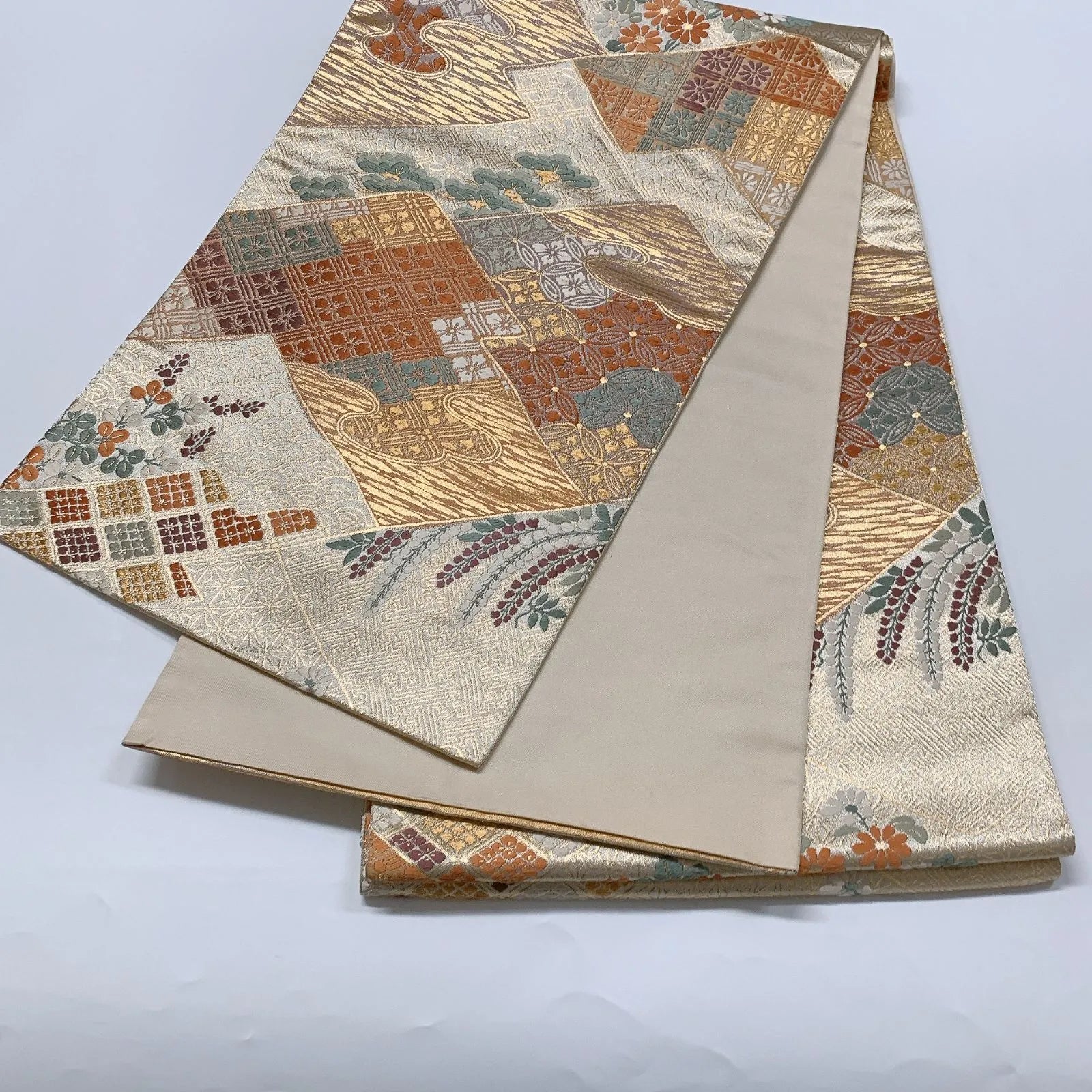 6573# Japanese Vintage Fukuro Obi Belt Kimono Fabric Silk Traditional Gold