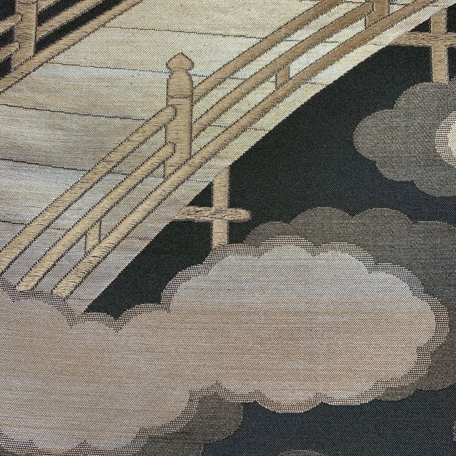This is a pouch obi with a cloud and bridge design in gold.