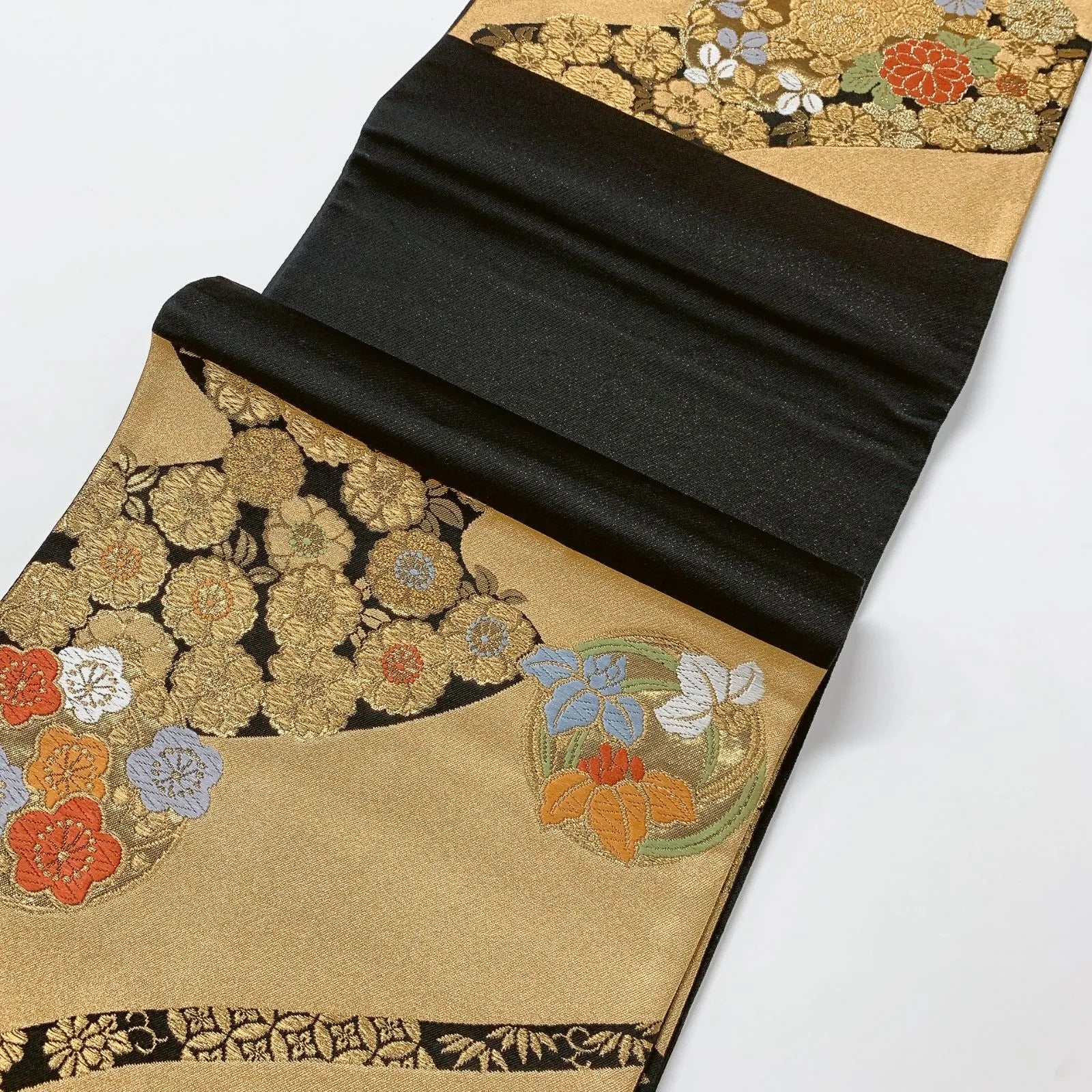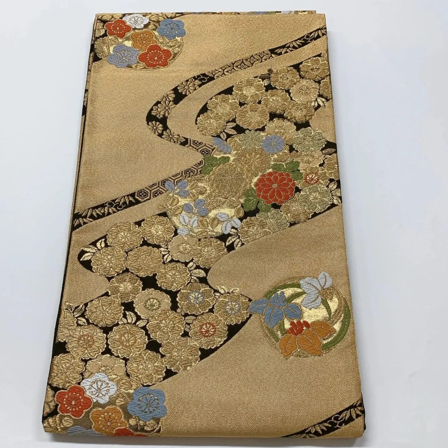 6588# Japanese Vintage Fukuro Obi Belt Kimono Fabric Silk Traditional Gold